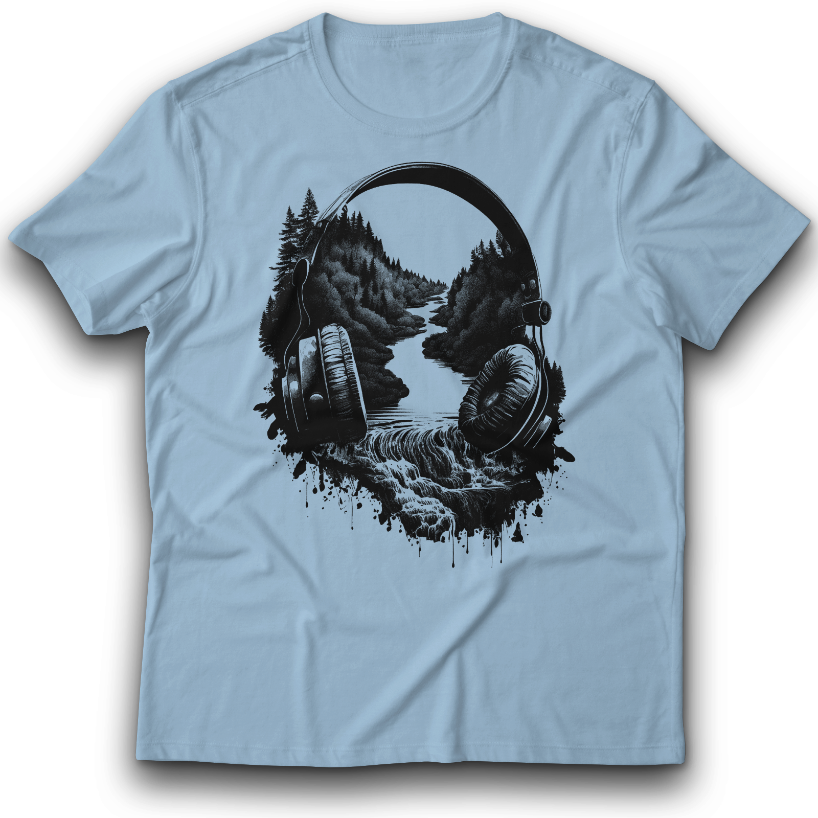 Kopfhörer im Natur Fluss Wald Musik T-Shirt M - XL 100% Baumwolle Bluetooth, Fluss, Geburtstag, Gewässer, Natur, Retro, Spaß, Wald