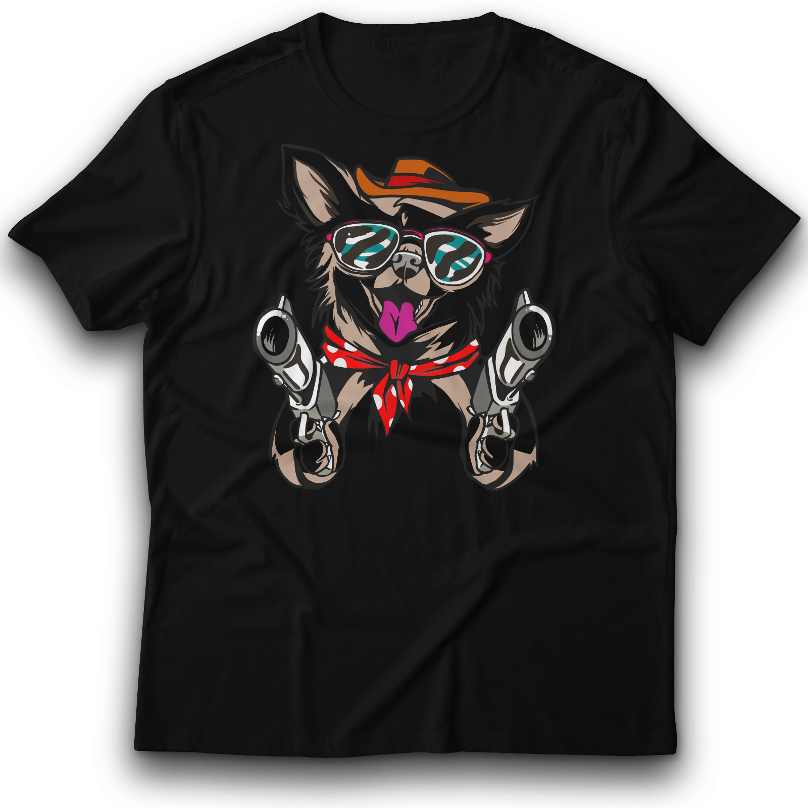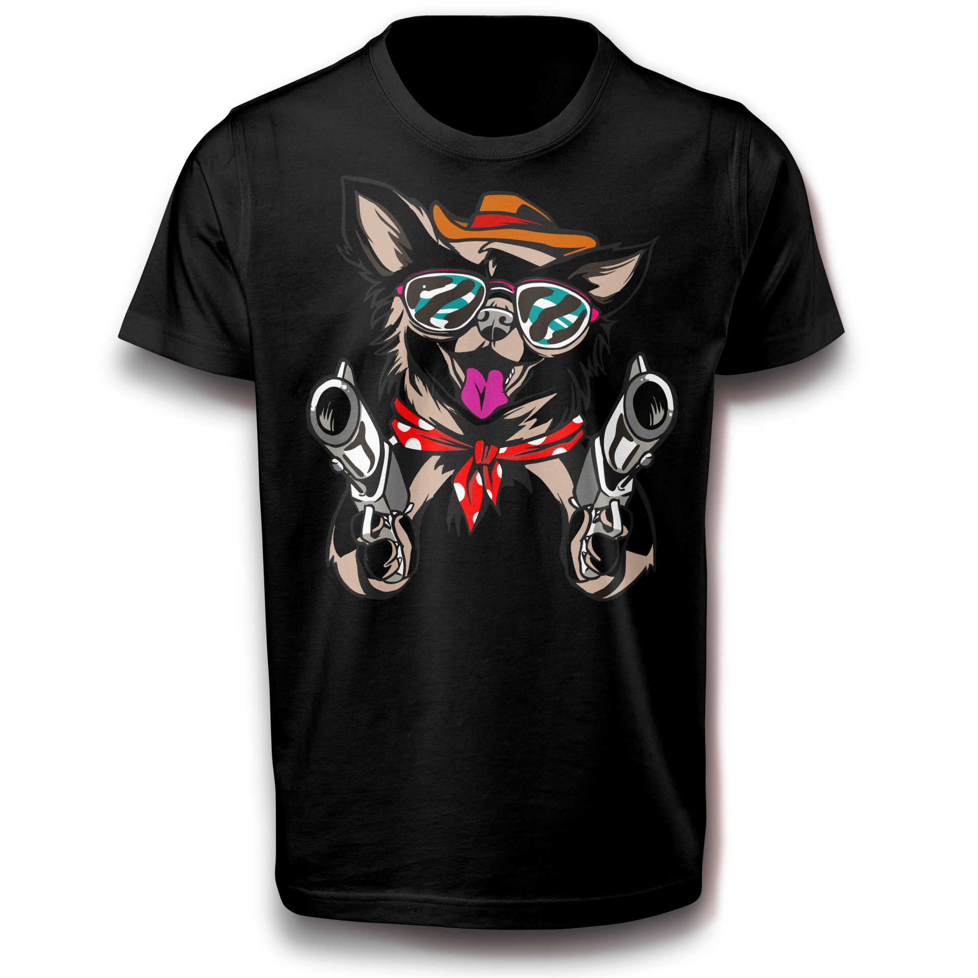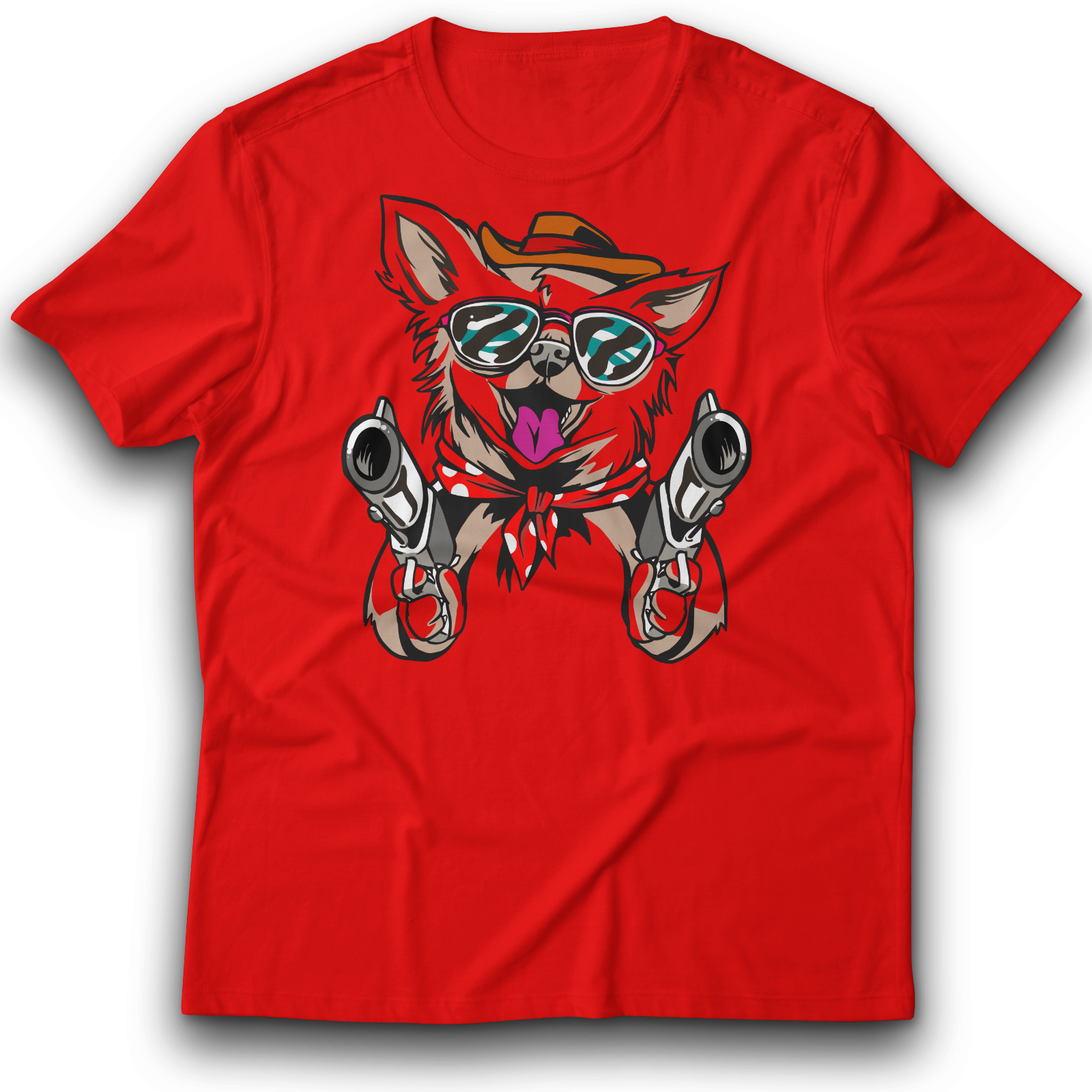 Chihuahua Hund Cowboy in Western art mit Revolver Fun T-Shirt 122-3XL Baumwolle Spaß Lustig Geschenkidee