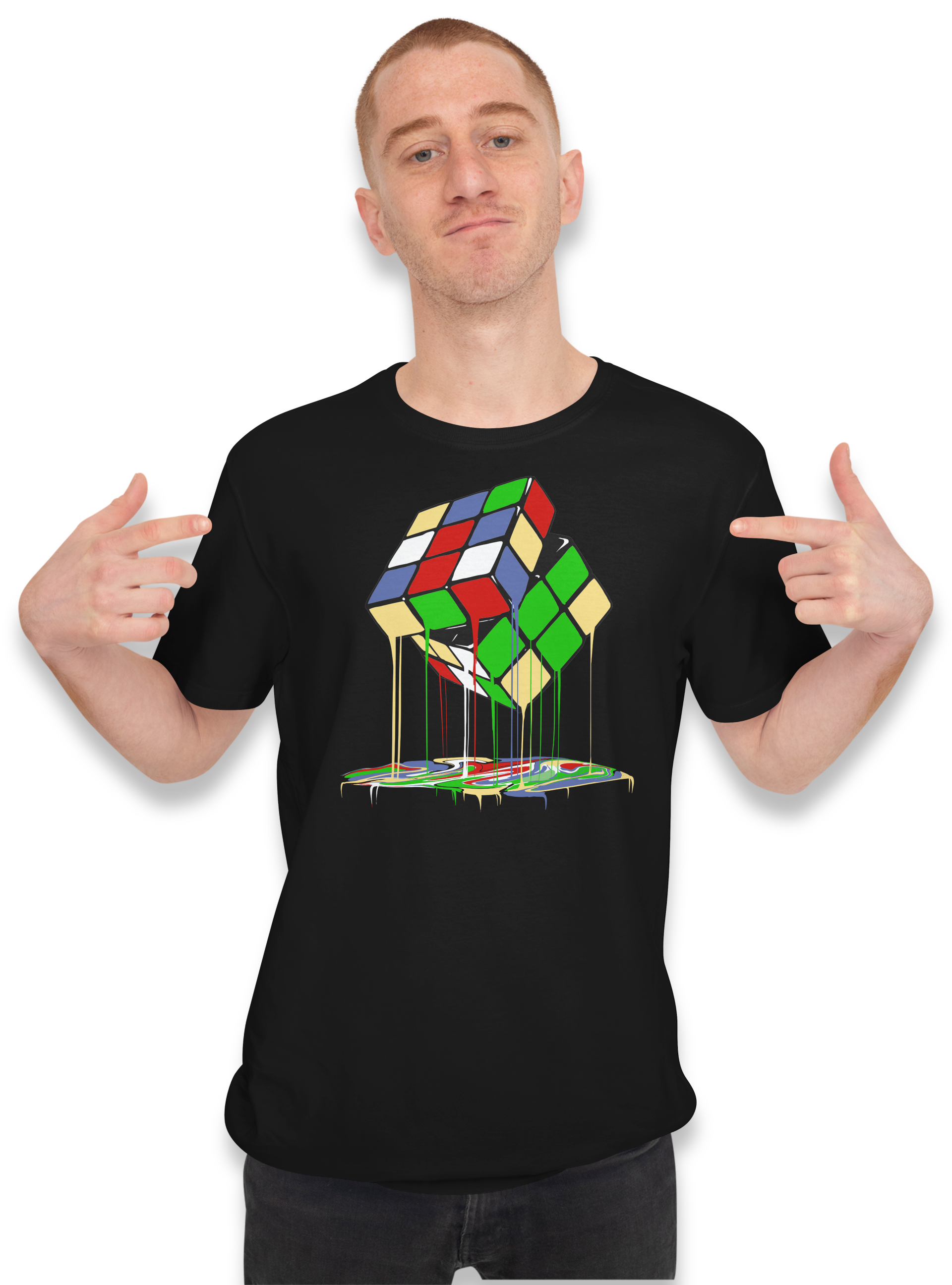 Design mit magischem Zauberwürfel zum Schmelzen T-Shirt 122 - 3XL Baumwolle Rubik's Cube Spaß Lustig Geschenkidee