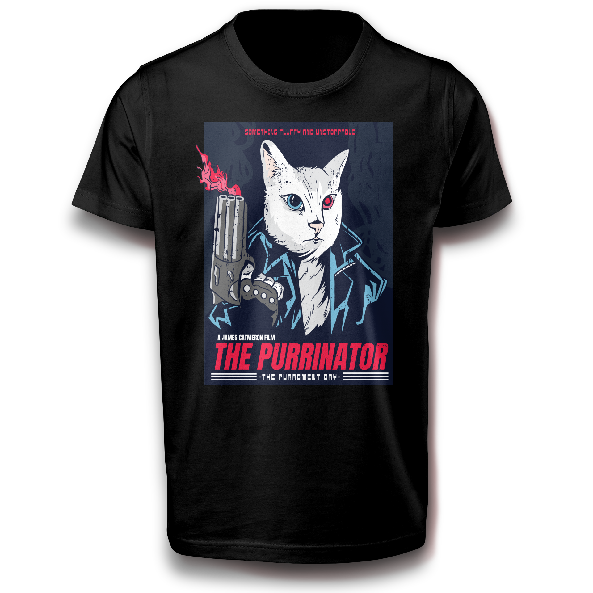 Das Purrinator T-Shirt Katze Film Parodie Poster spruch 122-3XL Baumwolle Normalgröße Spaß Lustig Geschenkidee