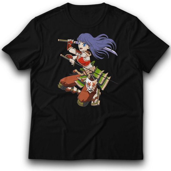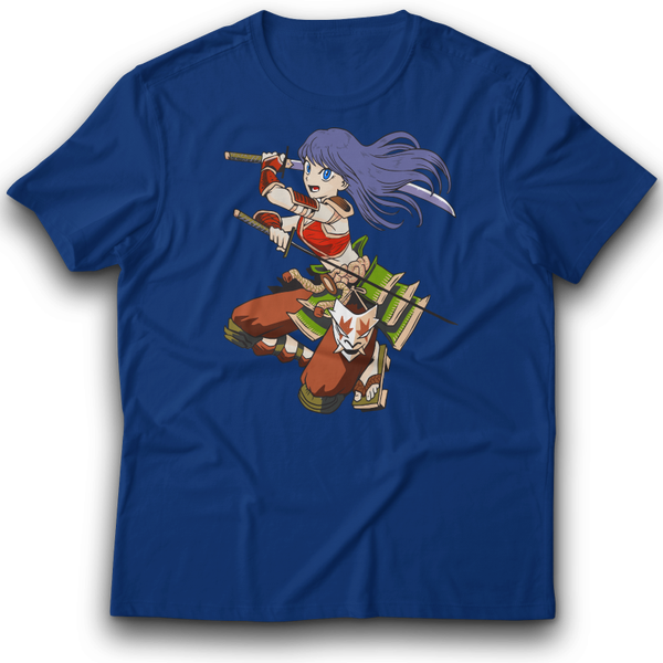 Samurai Anime Mädchen T-Shirt 122 - 3XL 100% Baumwolle Schwert Japan Spaß Lustig Geschenkidee