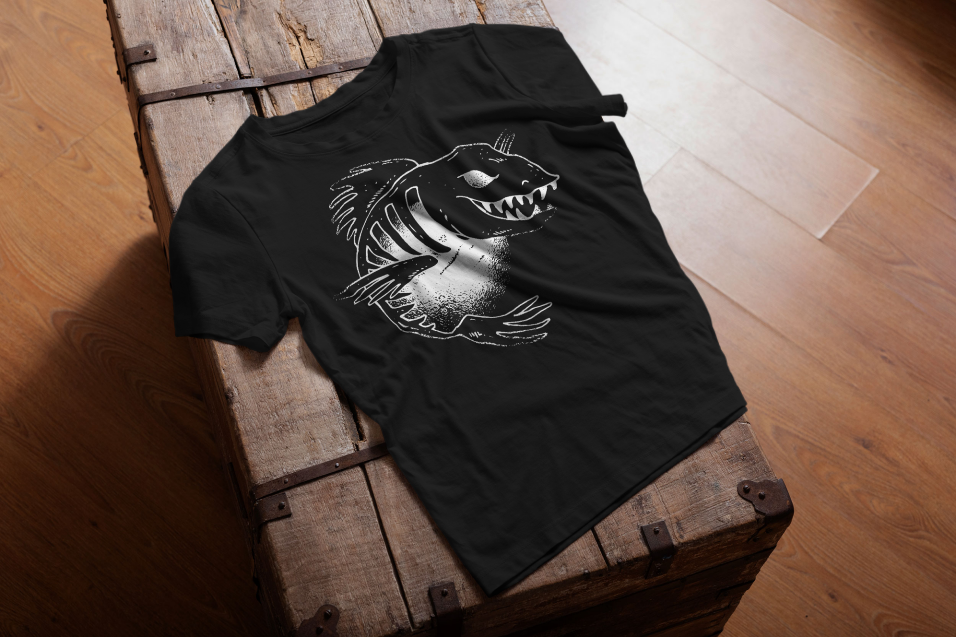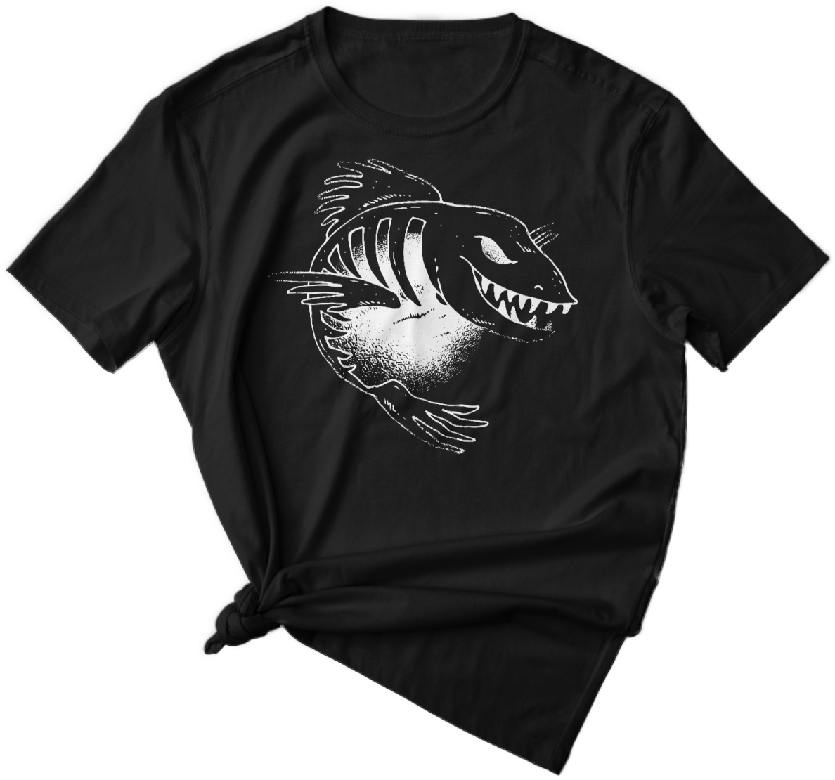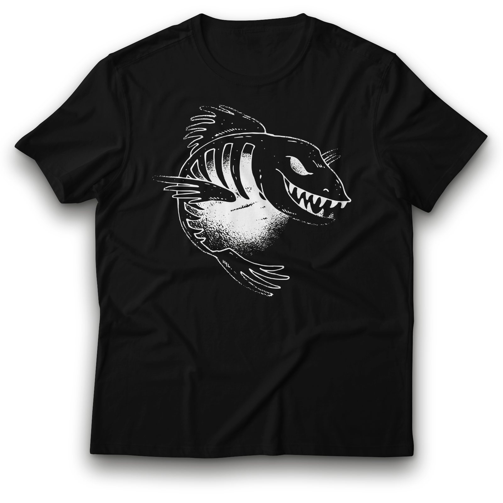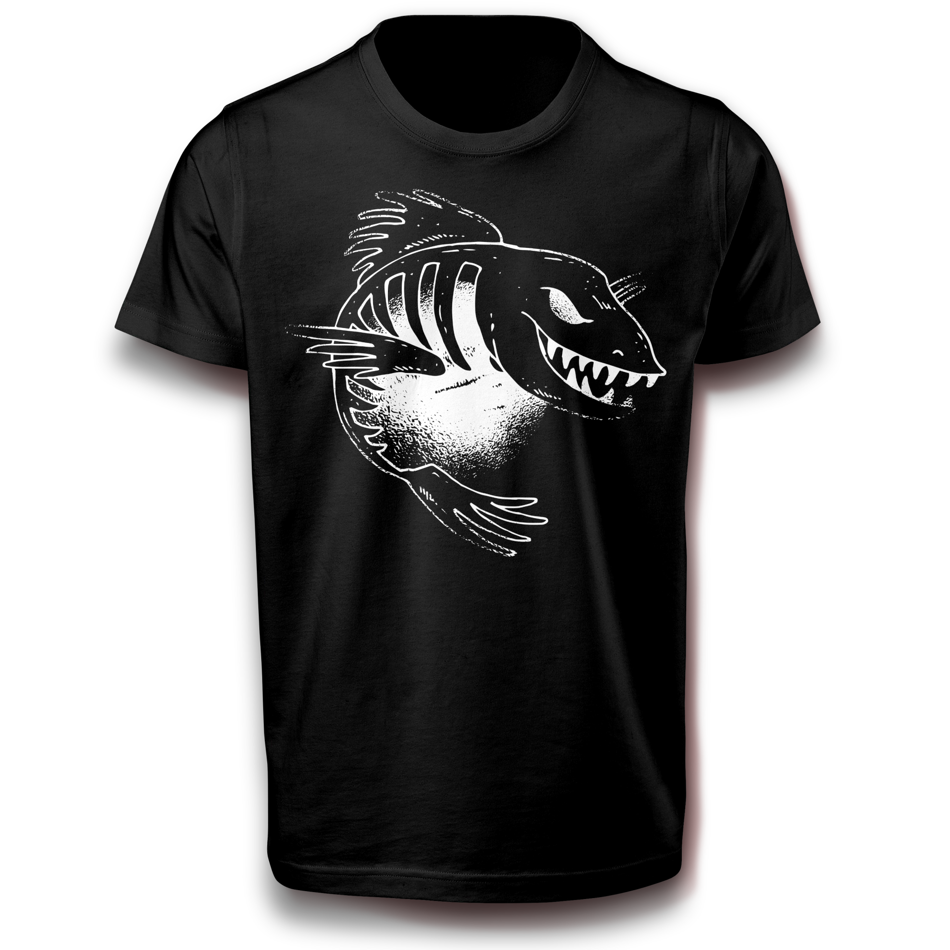 Böses Fischskelett Dark Fish Fisch T-Shirt 134 - 3XL Baumwolle DTG Normalgröße Lustig Geschenkidee