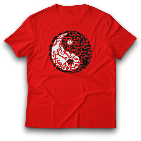Yin Yang Katzen Universum T-Shirt 122 - 3XL Baumwolle Geschenk Daoismus Energie Spaß Lustig Geschenkidee