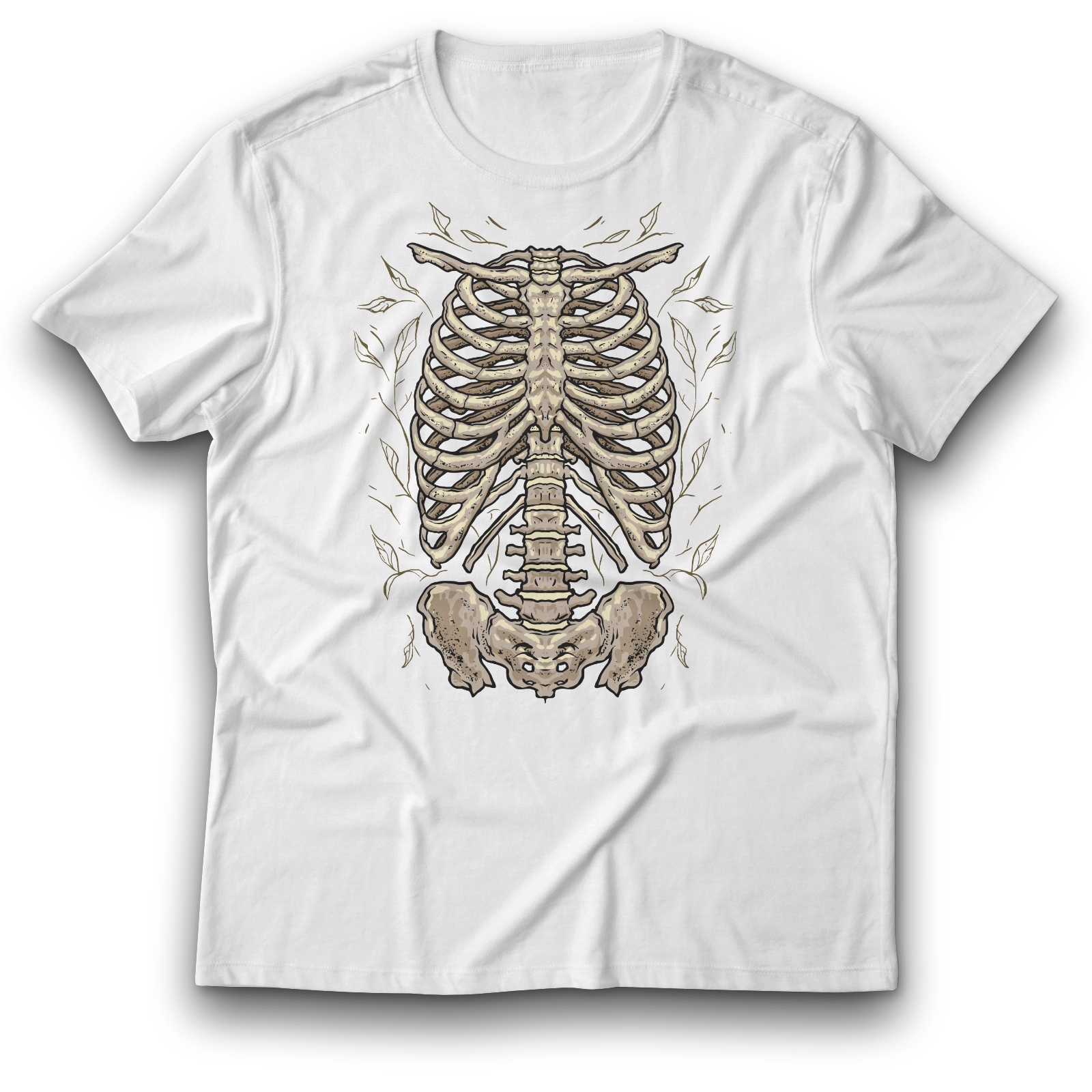 Skelett Skelettbrust & Blättern Fasching T-Shirt weiß 134 bis 3XL Baumwolle Spaß Lustig Geschenkidee