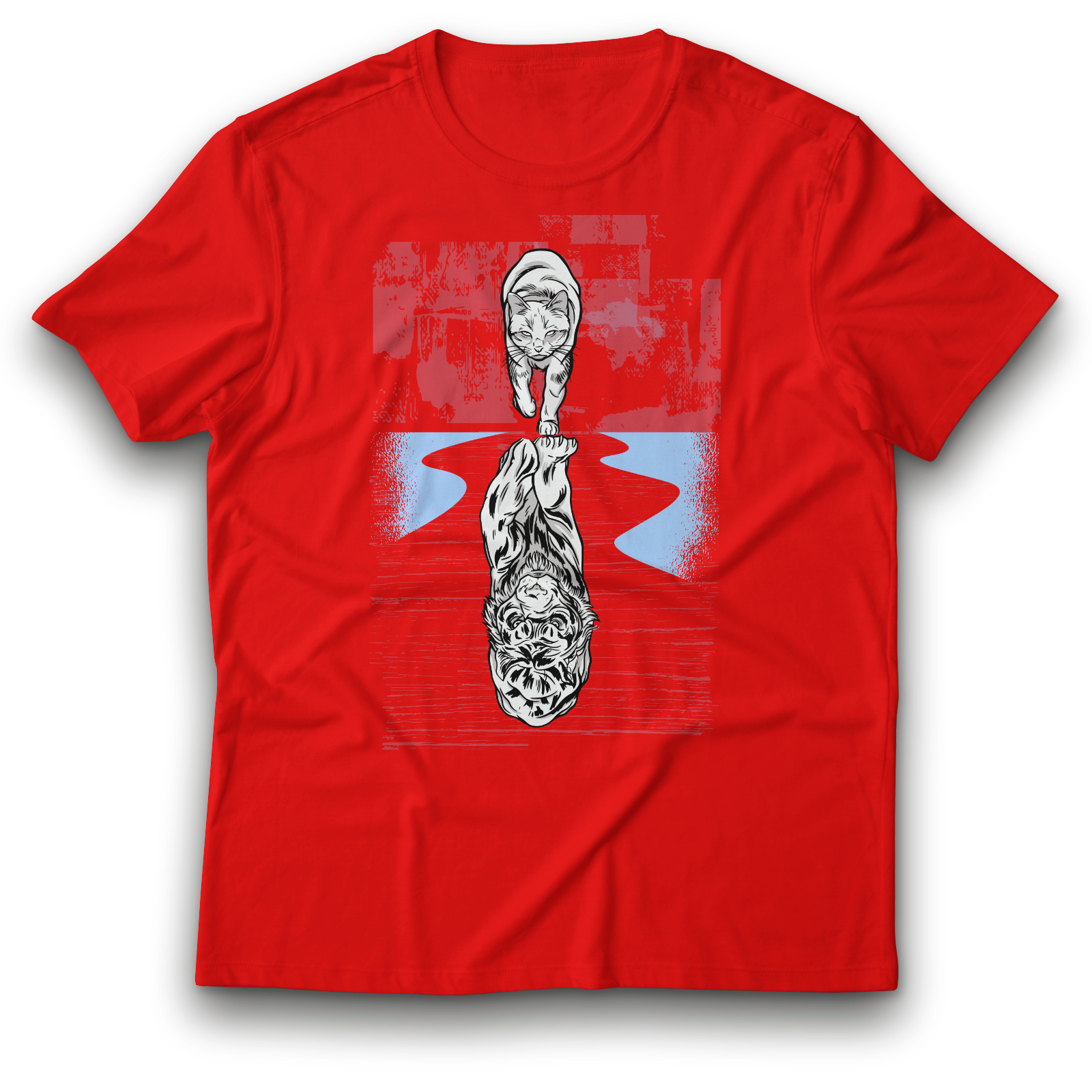 Katze Reflexion Tiger Tiere T-Shirt 122 - 3XL Baumwolle Spaß Lustig Muschi Meme Kater Cat Mietze Haustier Geschenkidee