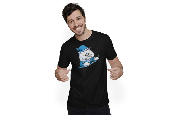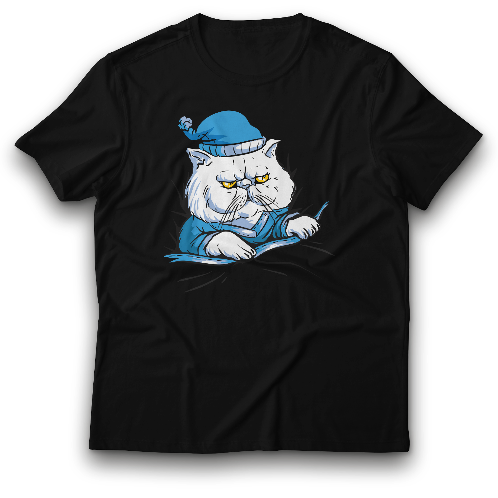 Schläfrige Katze im Pyjama T-Shirt 122 - 3XL Baumwolle Spaß Lustig Geschenkidee