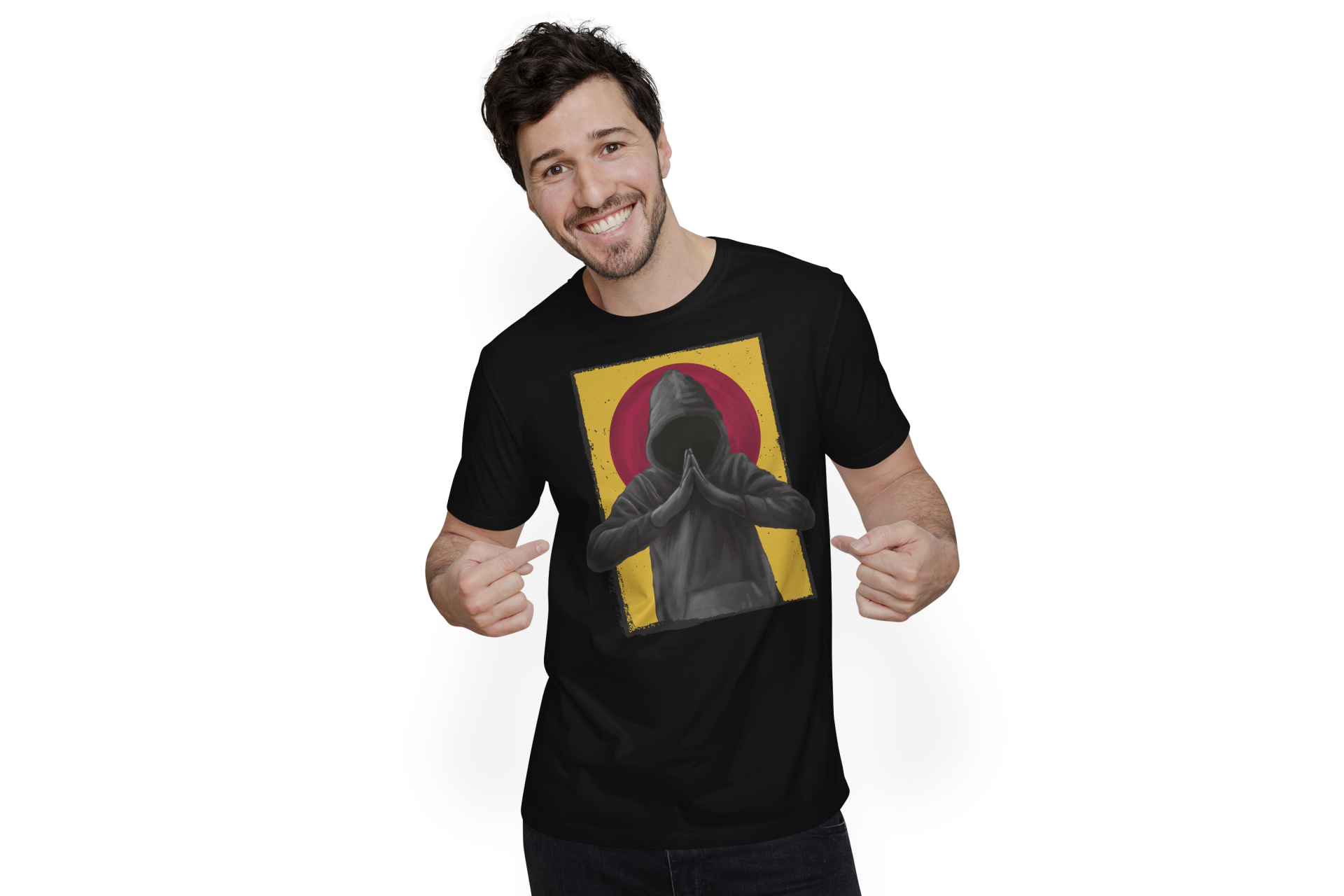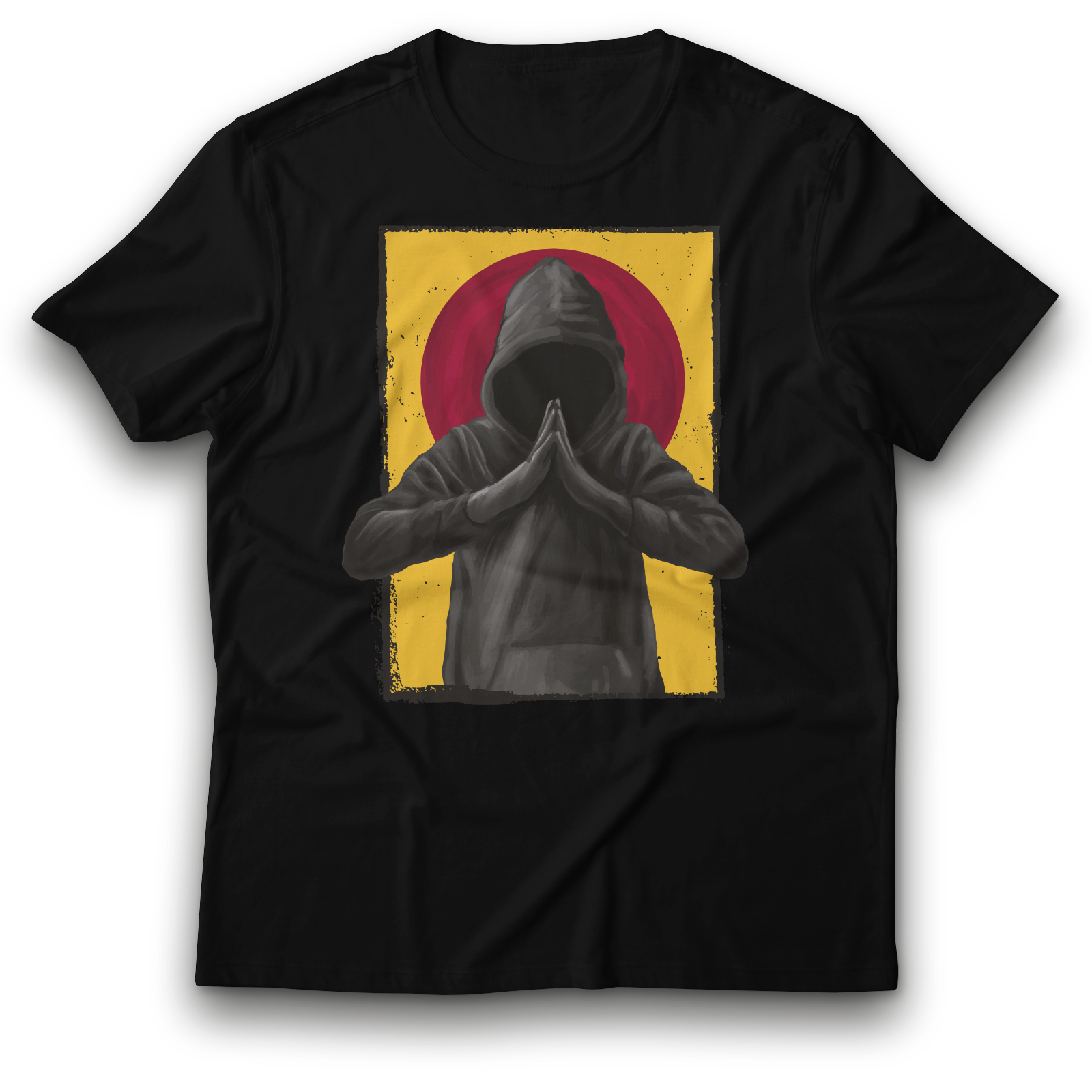 Mann mit Kapuze der betet T-Shirt 122 bis 3XL Baumwolle Gebet Religion Spaß Lustig
