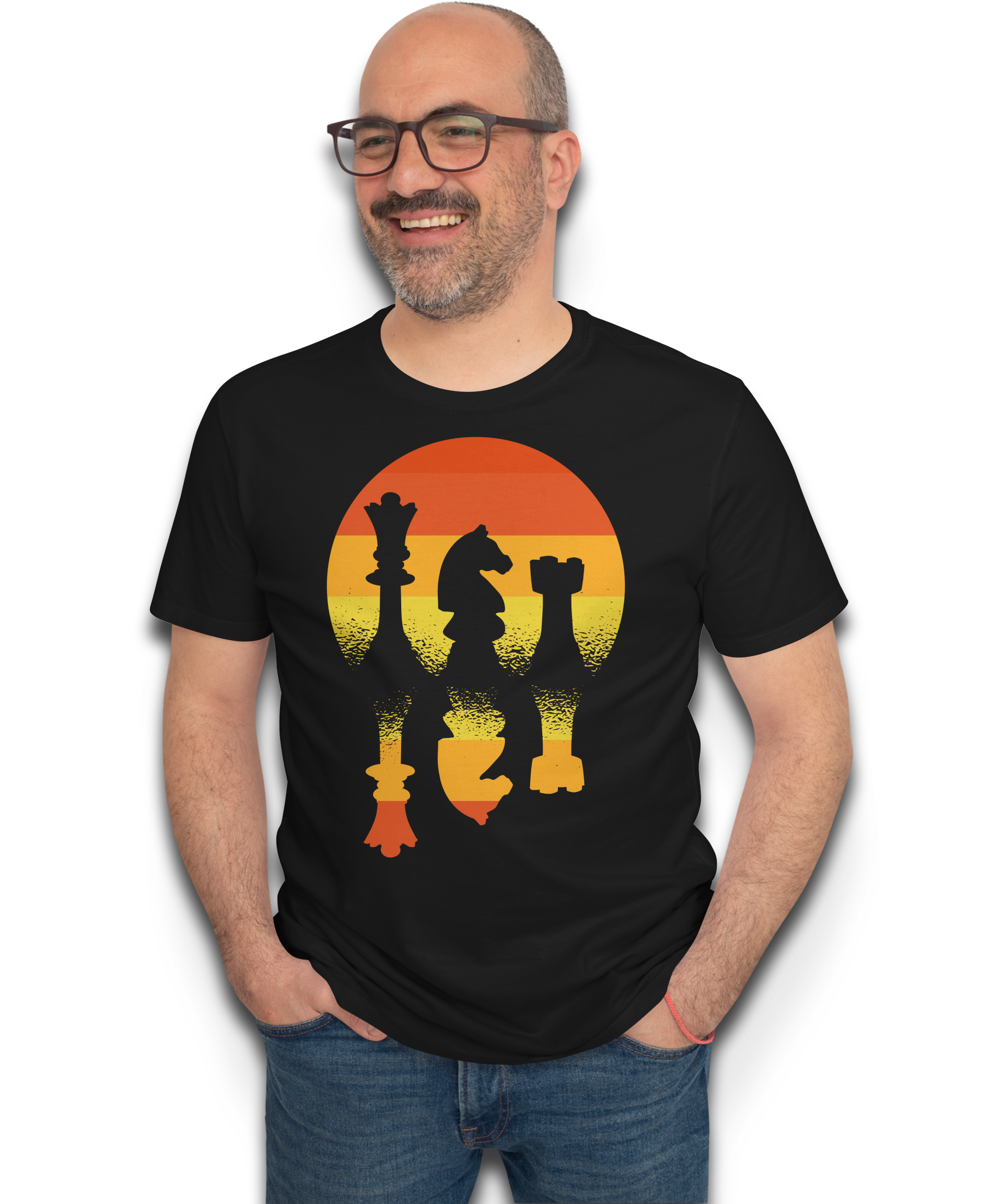 Retro Schachfiguren Schach Spiel T-Shirt 122 - 3XL Baumwolle Spaß Sonnenuntergang