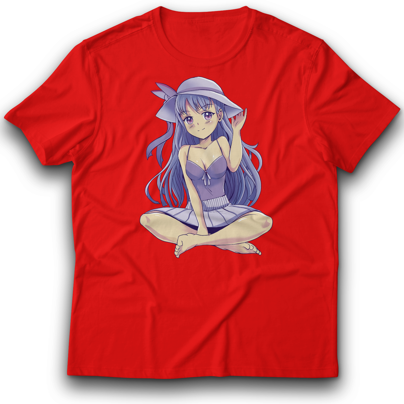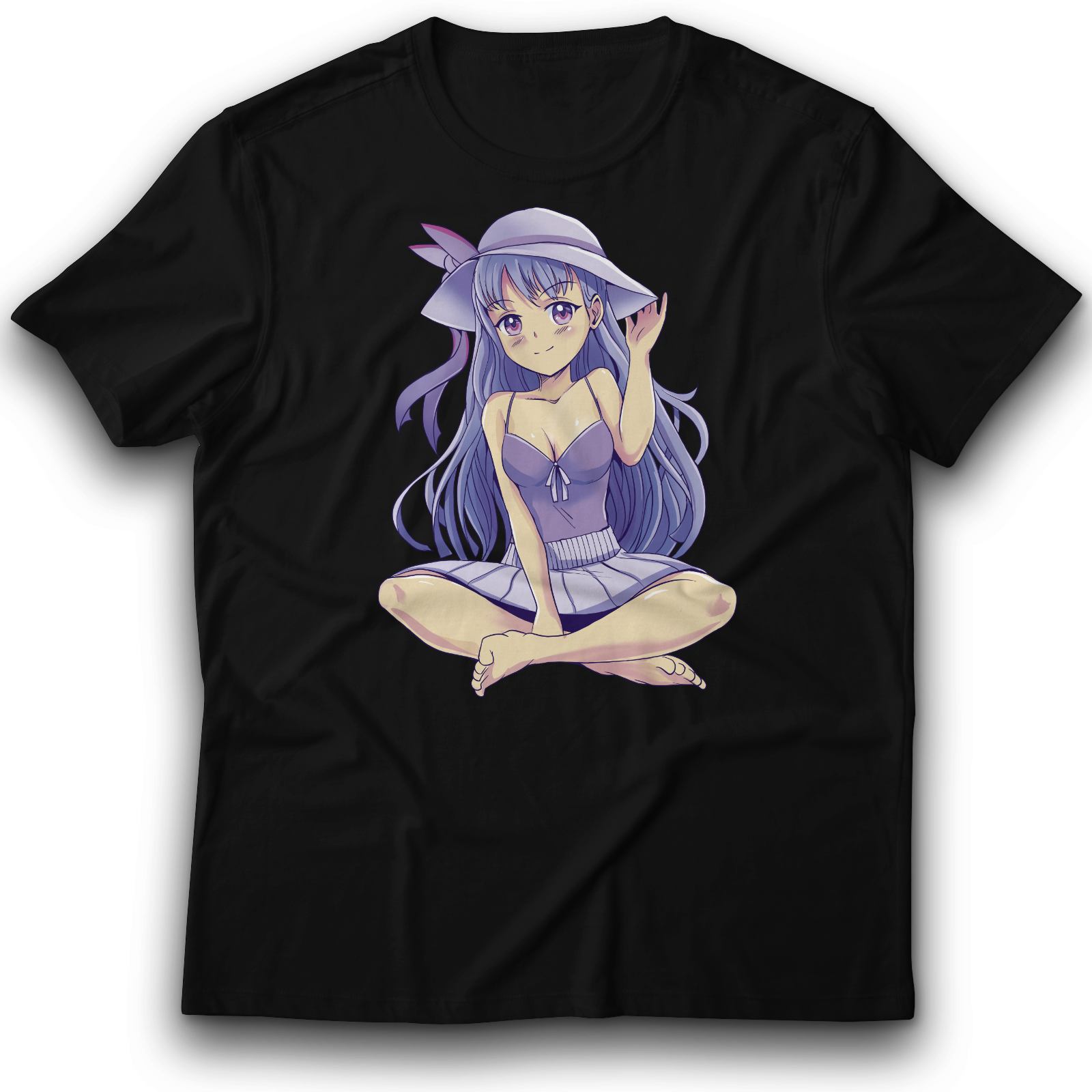 Anime Frau Mädchen mit Sommerkleid Picknick Lustig T-Shirt 122 - 3XL Baumwolle Fun Japan Geschenkidee