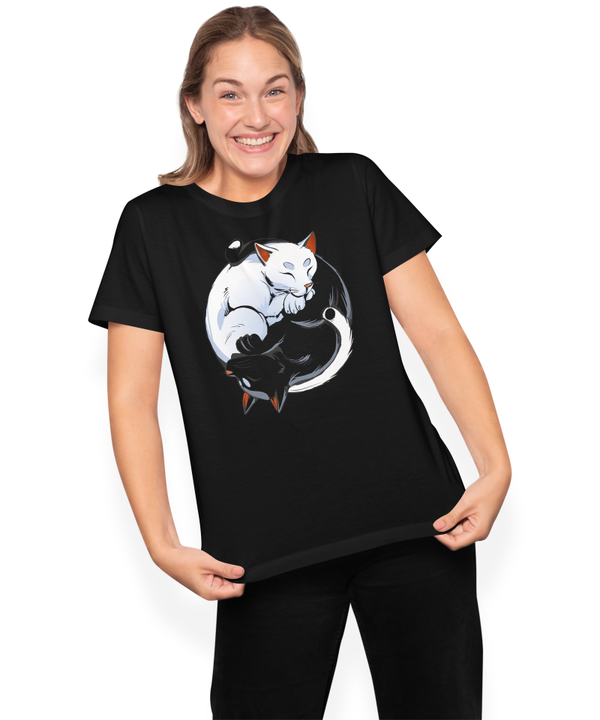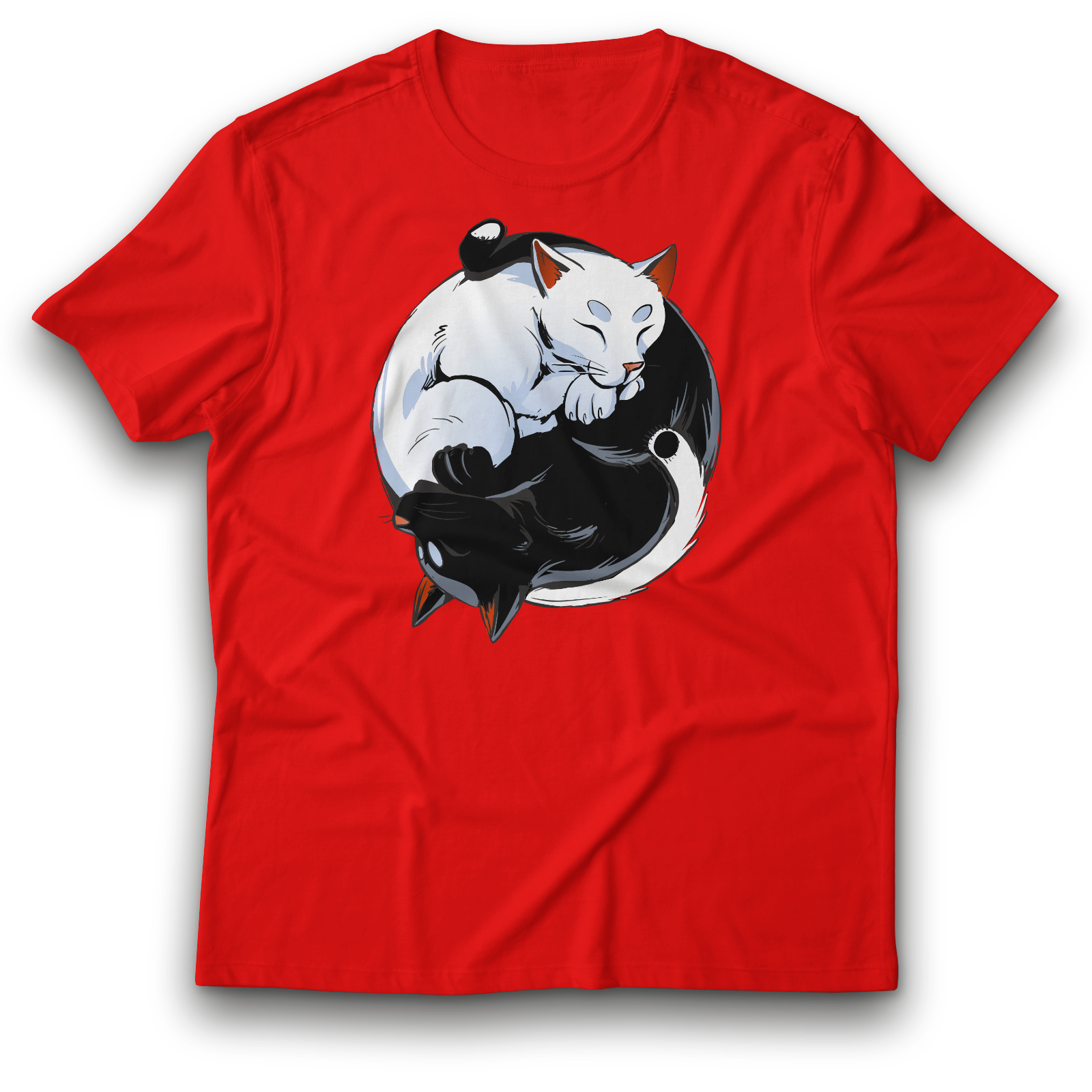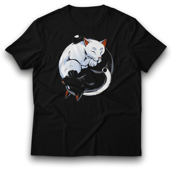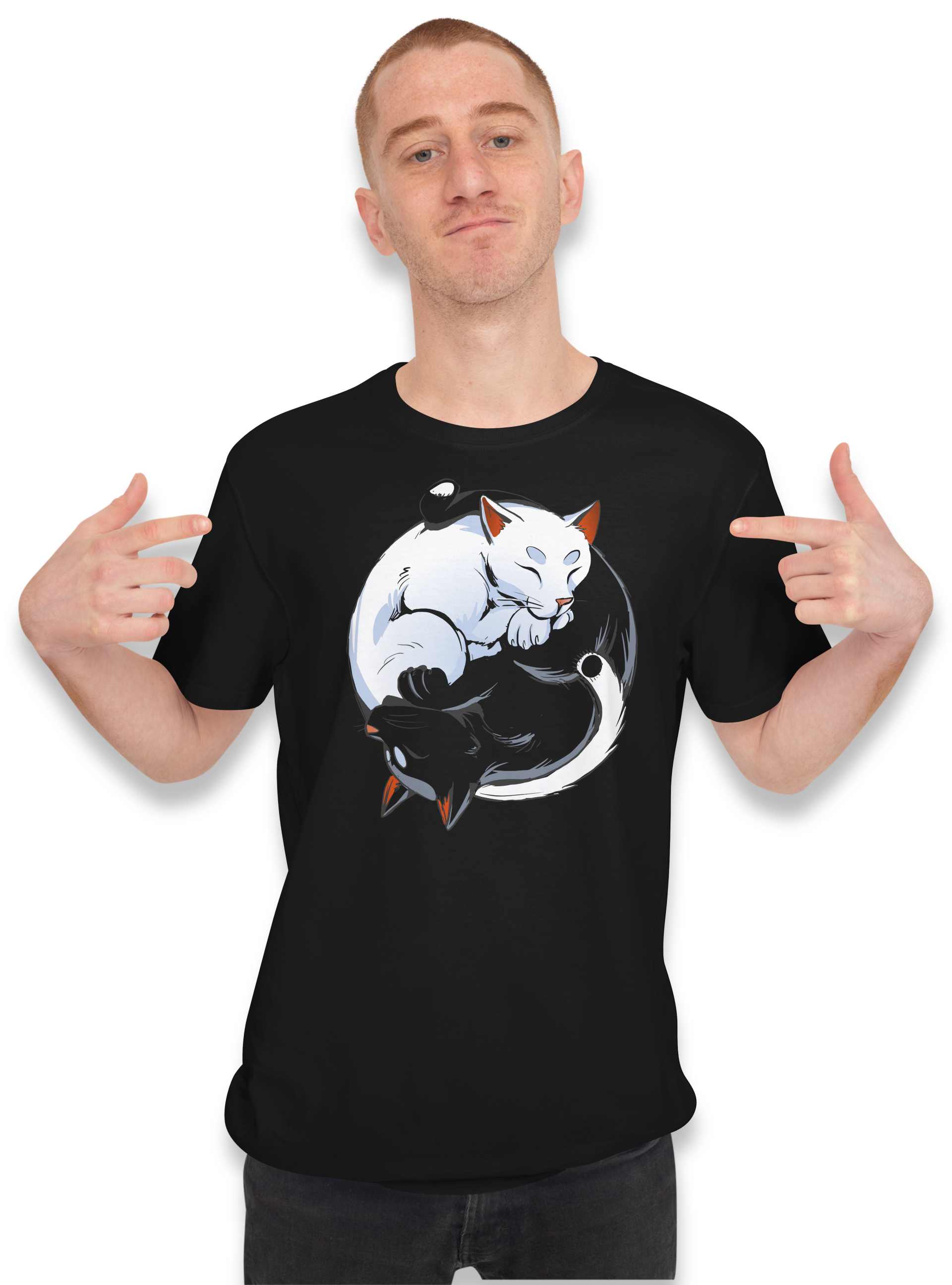 Yin Yang Katzen T-Shirt 122 - 3XL Baumwolle Katze Daoismus Energie Universum Spaß Lustig Geschenkidee