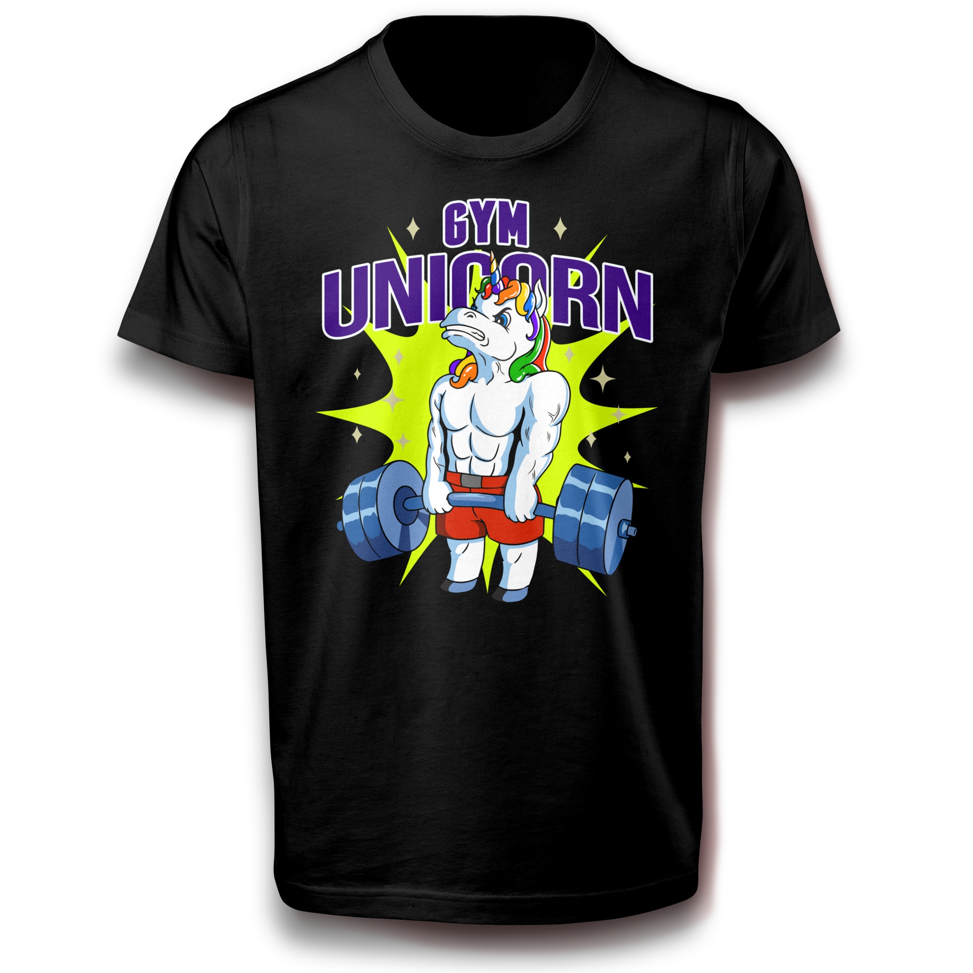 Fitnesstudio Fitness Einhorn Sport T-Shirt 122 - 3XL Baumwolle Spaß Muskulös Gewichte