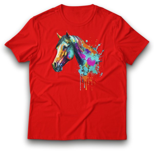 Aquarell Buntes Pferdekopf Design Fun T-Shirt 122 - 3XL Baumwolle Normalgröße Pferd Tier Farbe Spaß Lustig
