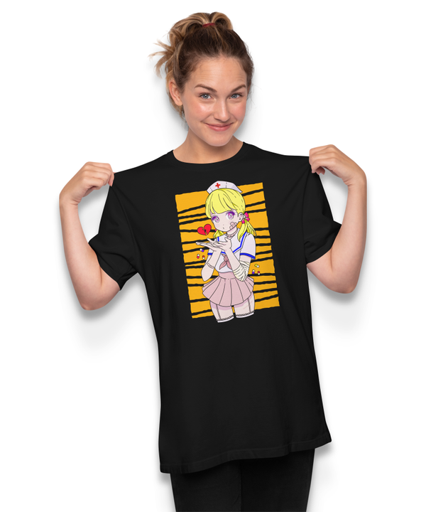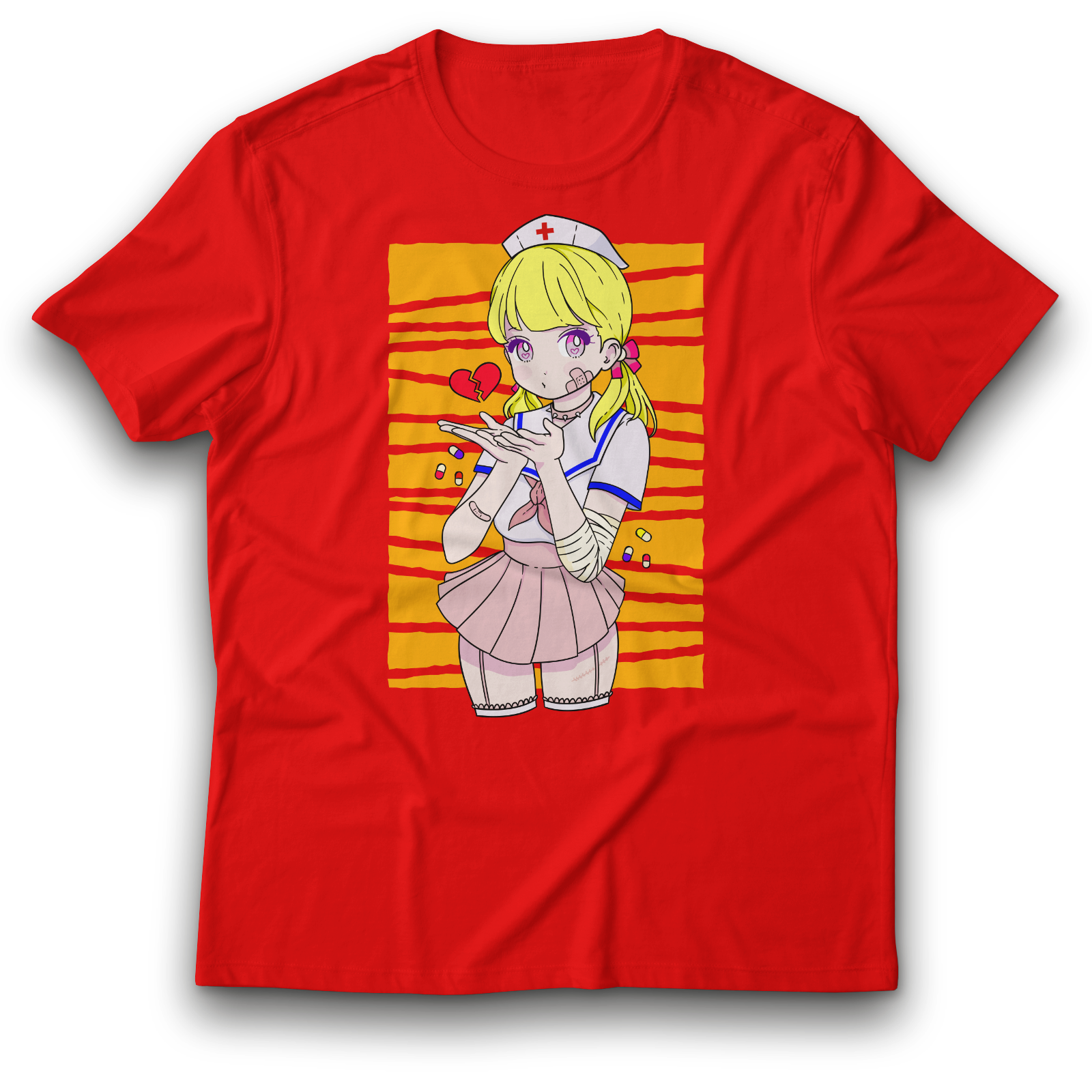 Anime Krankenschwester mit gebrochenem Herzen T-Shirt 122 - 3XL Baumwolle Arzt Madizin Herz