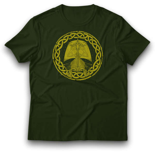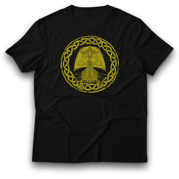 Wikinger Langschiff Odin Boot Walhalla Gold Symbol T-Shirt 122 - 3XL 100% Baumwolle Mythologie Keltisch Nordisch