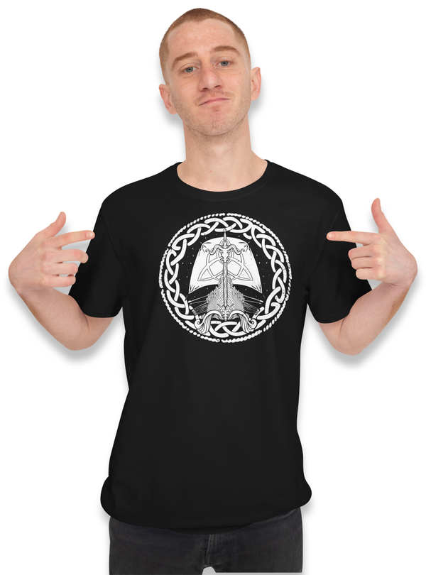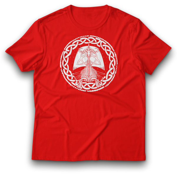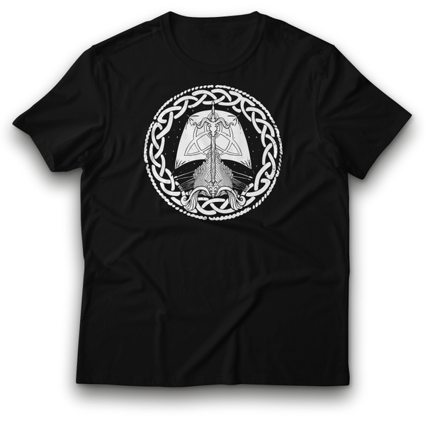 Wikinger Langschiff Odin Boot Walhalla Weiß Symbol T-Shirt 122 - 3XL 100% Baumwolle Mythologie Keltisch Nordisch