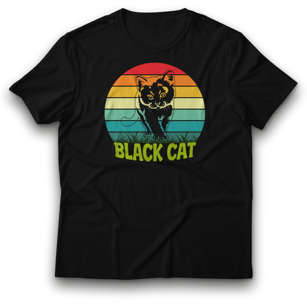 Black Cat Schwarze Katze Hauskatze T-Shirt 122 - 3XL Baumwolle Mietze Haustier Muschi Meme Kater Geschenkidee