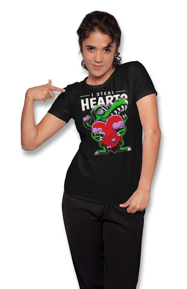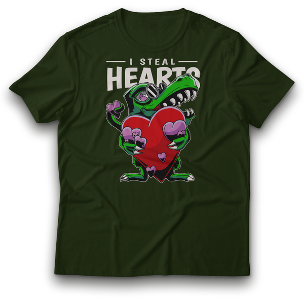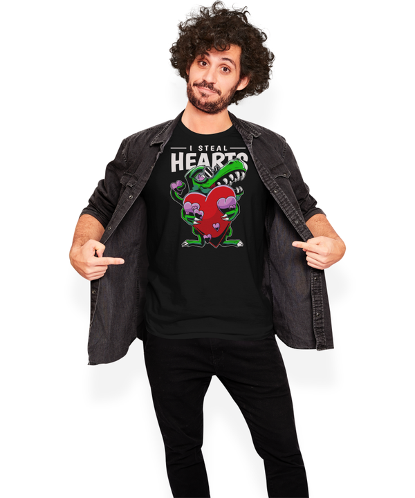 T-Rex Dinosaurier mit Herz - Ich stehle Herzen verliebt T-Shirt 122 - 3XL Baumwolle Spaß Lustig Geschenkidee Heart Amour Liebespaar