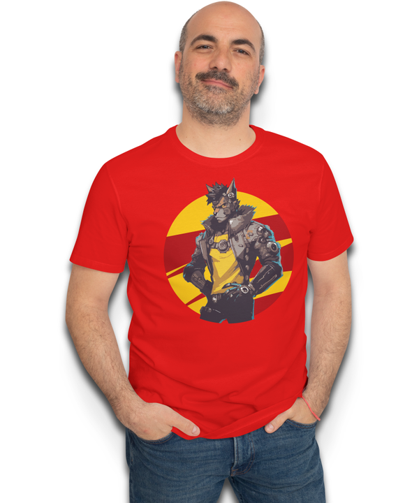 Wolf Cyborg Roboter Charakter Popkultur T-Shirt 122 - 3XL Baumwolle Humanoider Mecha Science Fiction Cyberpunk
