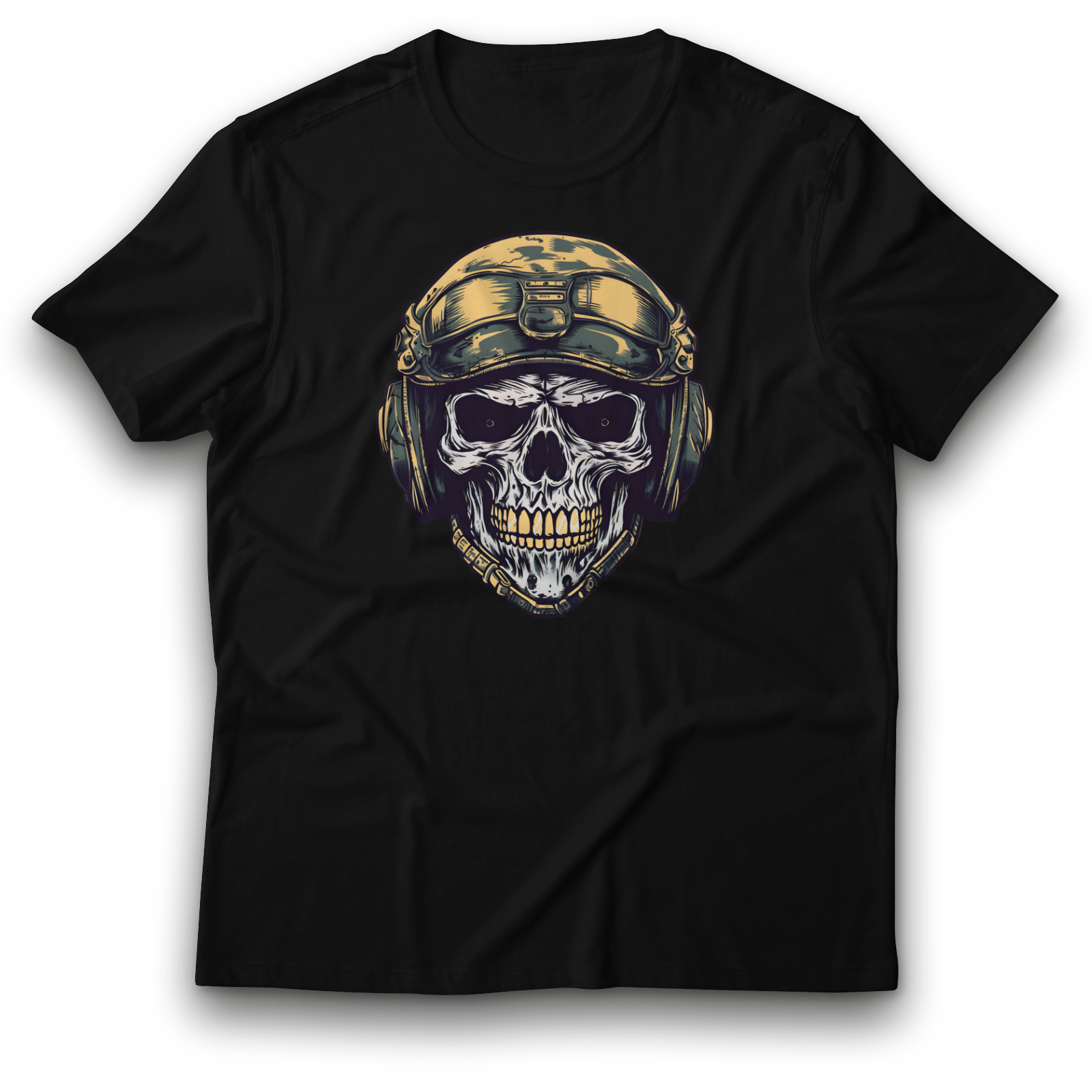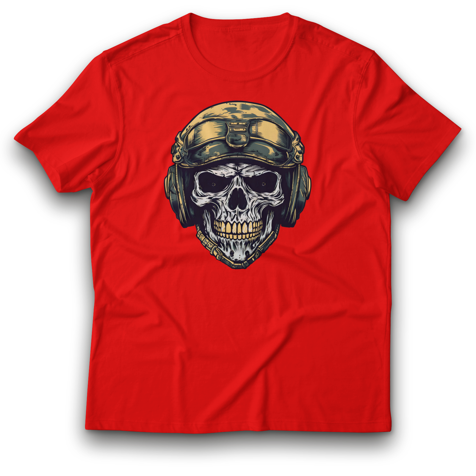 Totenkopf mit Militärhelm Untoter Unheimlich Halloween T-Shirt 152 - 3XL Baumwolle Schädel Skull Fun