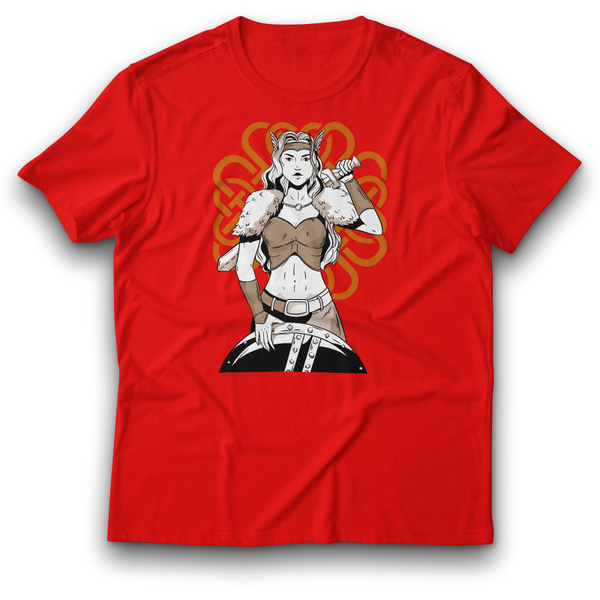 Wikinger Frau mit Schwert und Schild Schildmaid Kriegerfrauen T-Shirt 122 - 3XL Baumwolle
