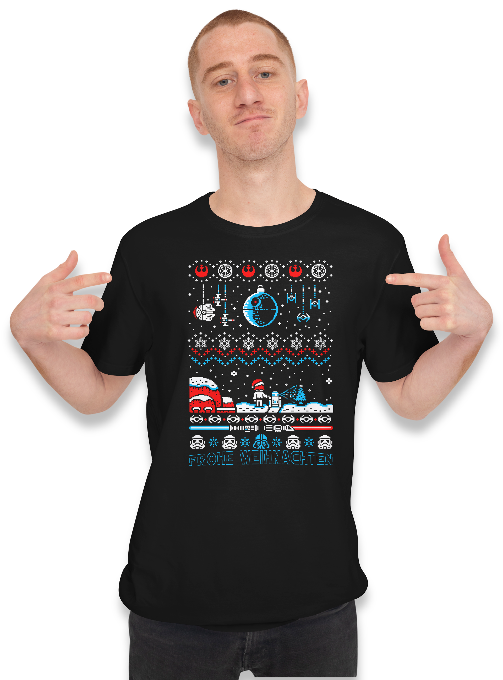 Weihnachten im Weltraum T-Shirt schwarz 122 - 3XL Baumwolle Mond Sterne Weltall Fun Schneekugel Winter Santa