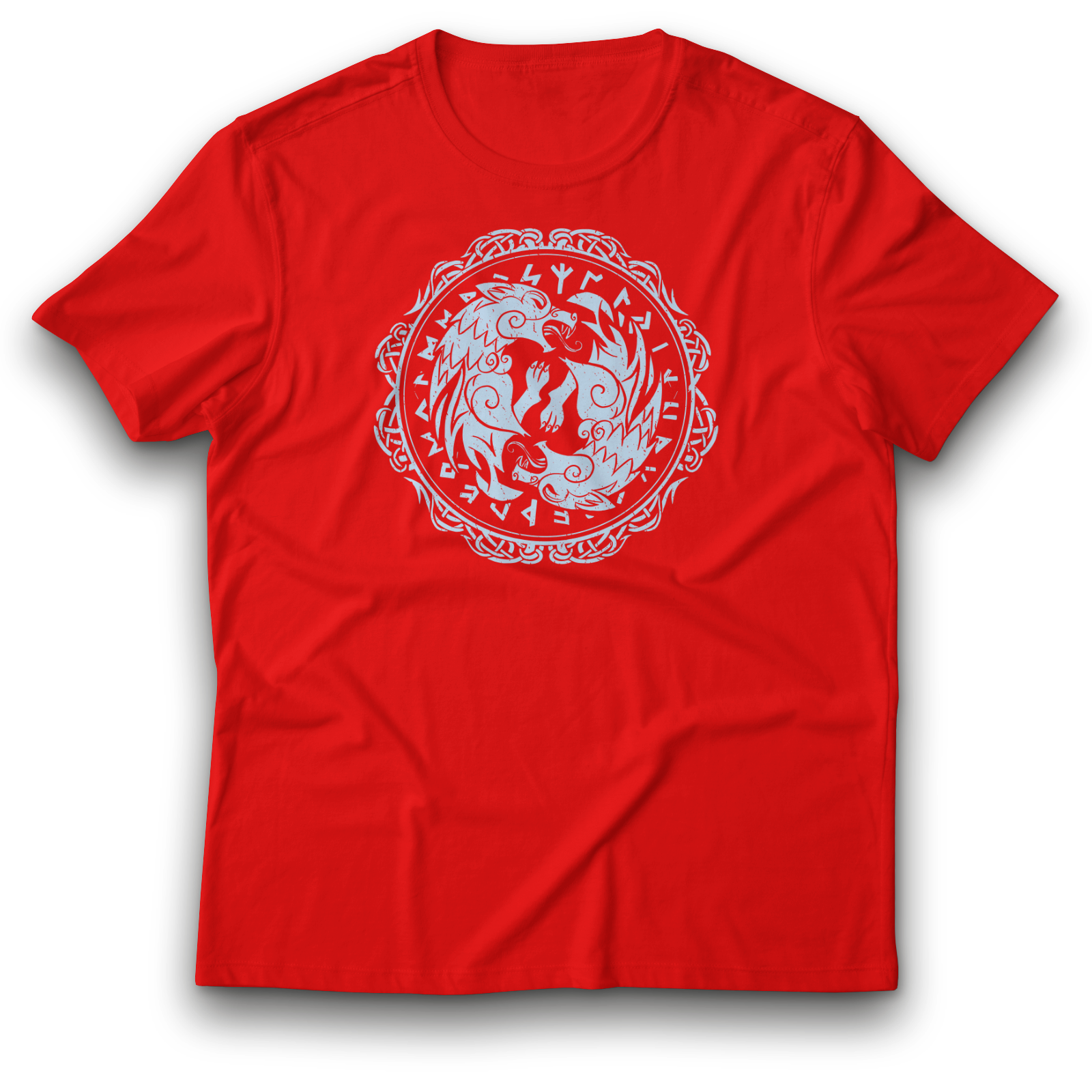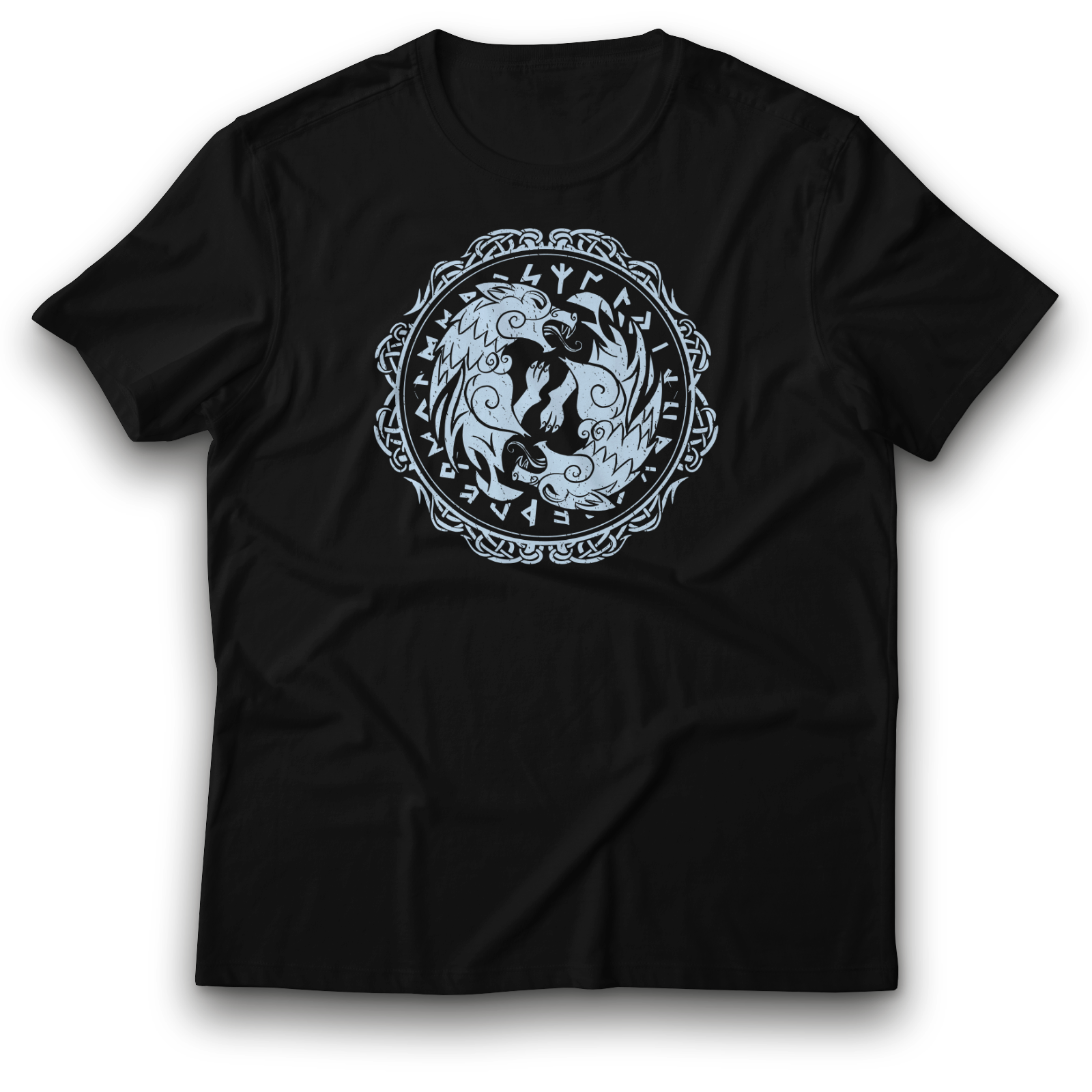 Runen Wölfe Wolf Wikinger Symbol T-Shirt 122 - 3XL Baumwolle Odin Mythologie Valhalla Tribal Kampf Krieger Ragnar Raubtier