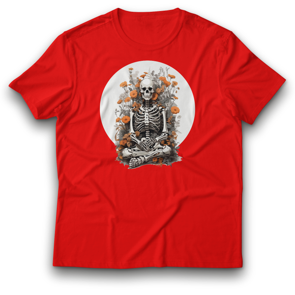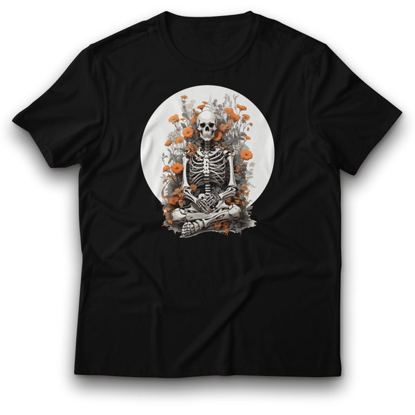 Skelett mit Pflanzen am Botanisch Natur Thron Skull T-Shirt 134 - 3XL Baumwolle Fun Blumen Halloween
