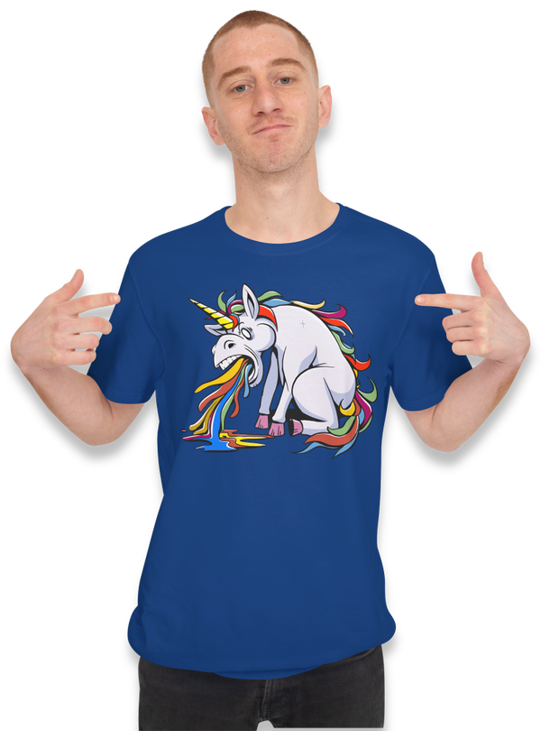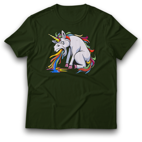Fabelwesen Einhorn Kreatur erbricht Regenbogen Fun T-Shirt 122 - 3XL Baumwolle Spaß Lustig