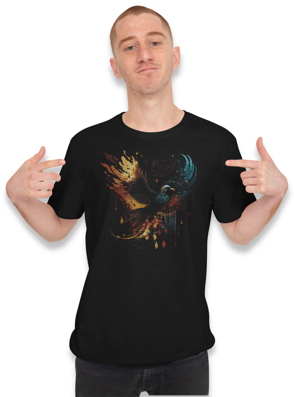 Neugeborene Phönix im Feuer & Wasser T-Shirt schwarz 110 - 3XL Baumwolle Vogel Flammen Feuervogel Ägypten Tier Fun