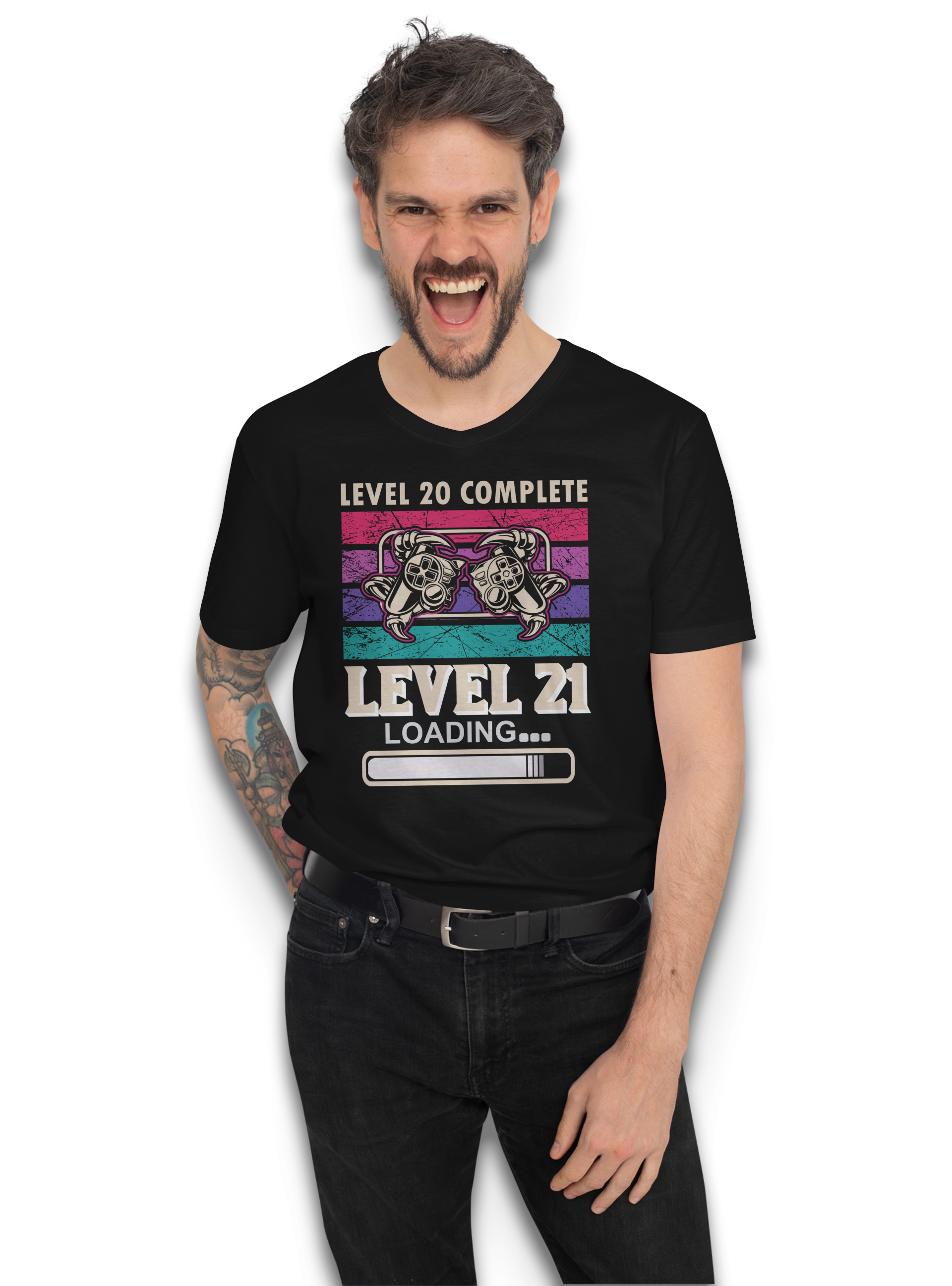 Level 21 Loading Gamer Zocker Outfit Party T-Shirt 122 - 3XL Baumwolle Konsole Controller Spaß Lustig Geschenkidee
