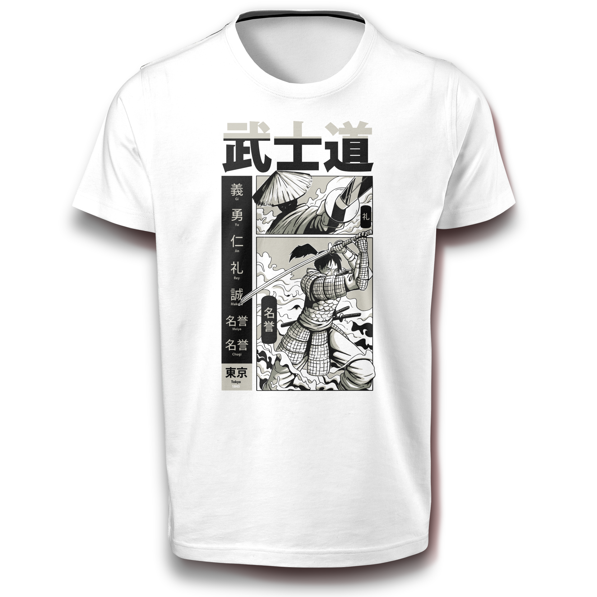 Japanisches Samurai Krieger Ninja Kämpfer Bushido dienen T-Shirt weiß 122 - 3XL Baumwolle Japan