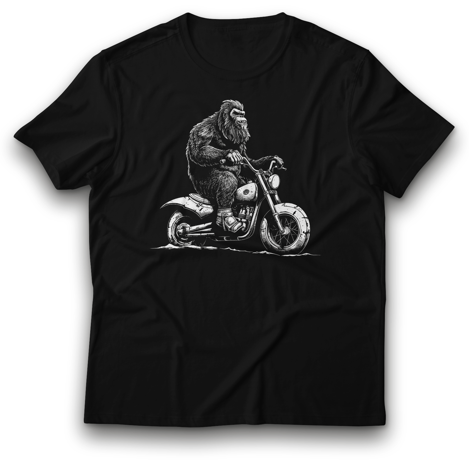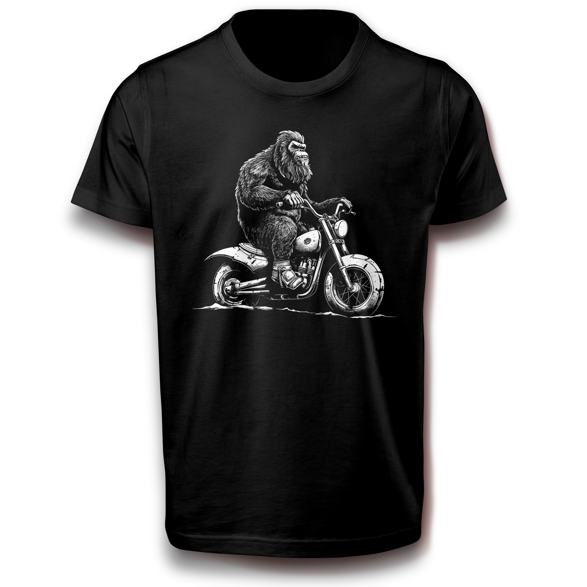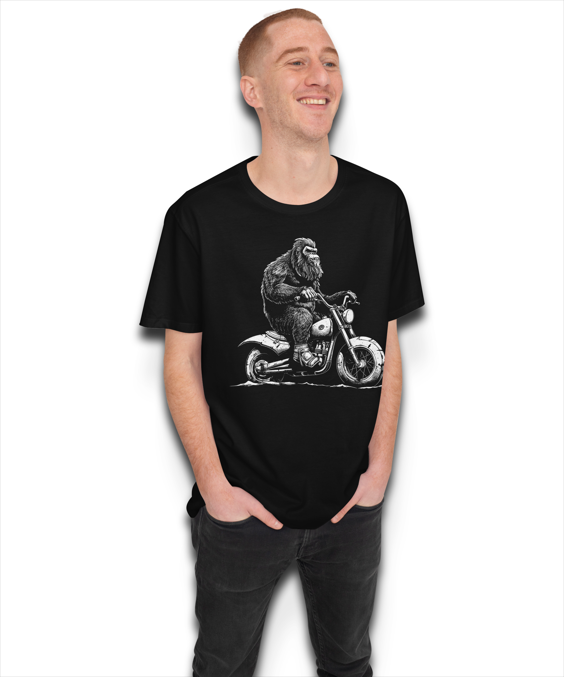 Bigfoot Biker Sasquatch auf Motorrad Mythisch Kreatur Abenteuer T-Shirt schwarz 110 - 3XL Baumwolle Tier Tiere
