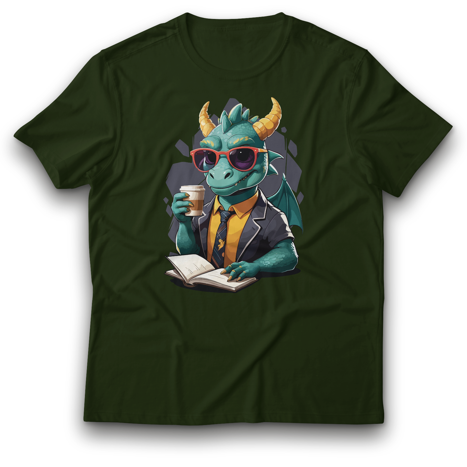 Leser Drache trinkt Coffee-to-go Kaffee Buch Brille Cool Fun Mischwesen Fabelwesen T-Shirt 122 - 3XL Baumwolle