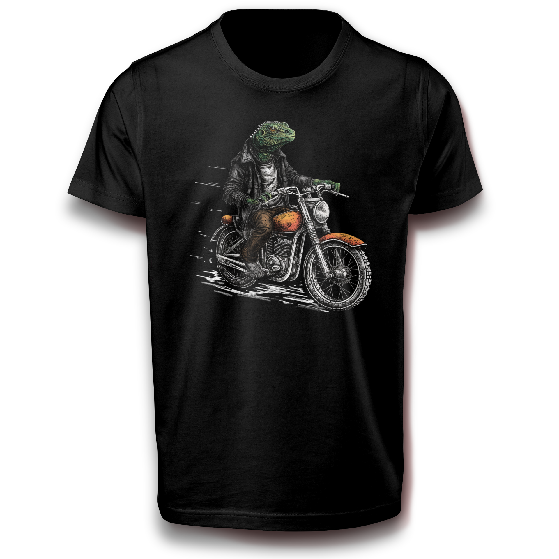 Repti Eidechse Biker Cool mit Motorrad Fantasie Fun T-Shirt schwarz 110 - 3XL Baumwolle