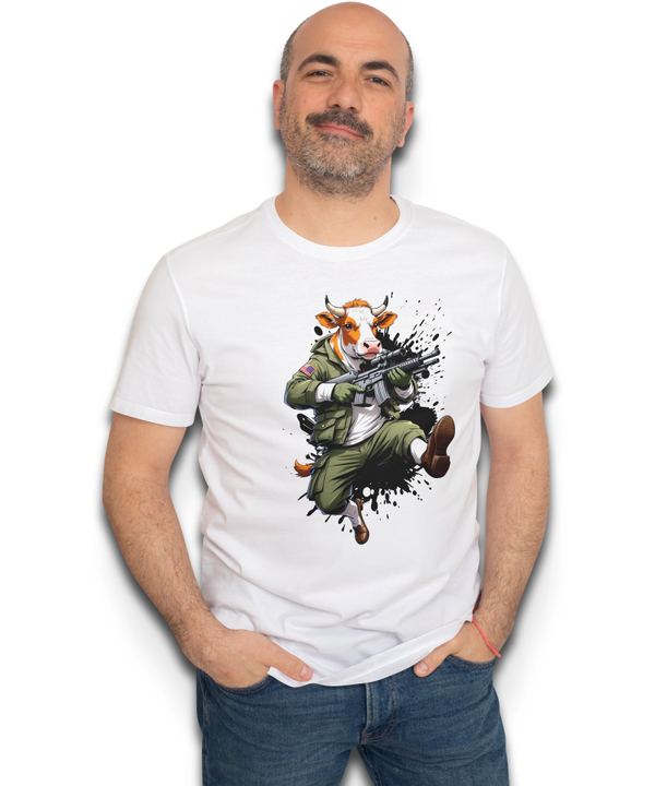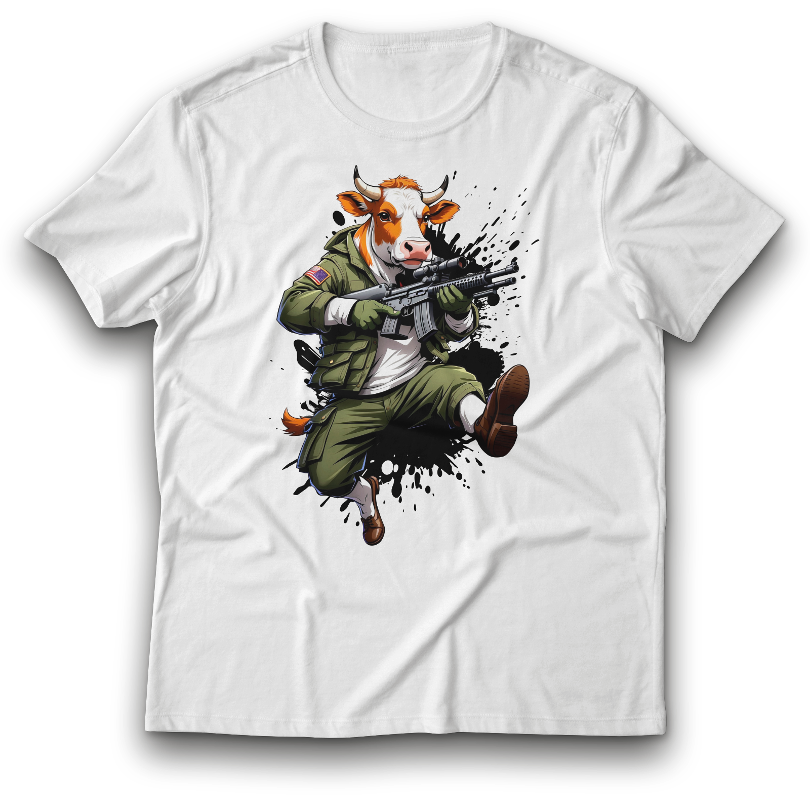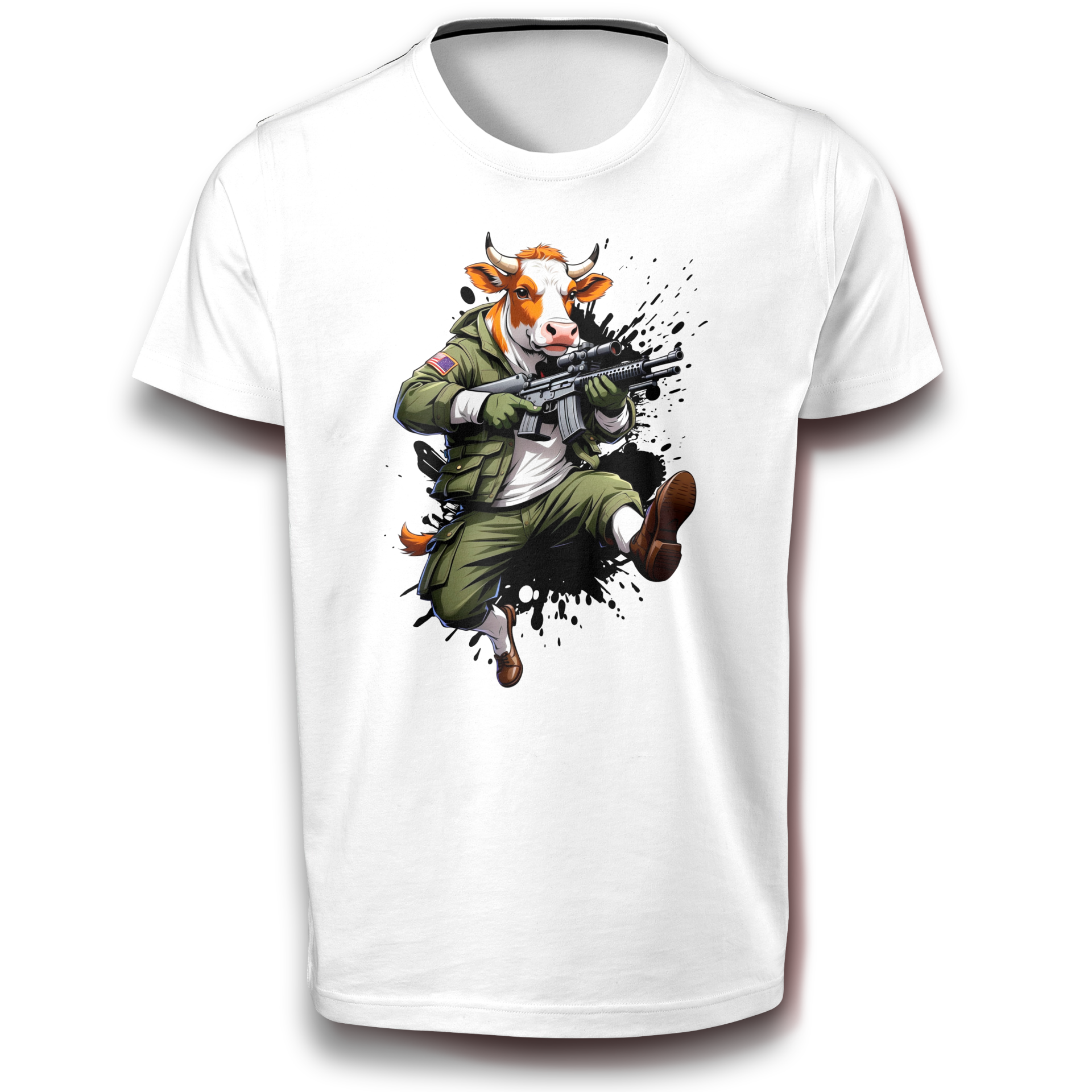 Pew Pew Bewaffnete Kuh Militär Armee Waffe Sturmgewehr G36 Humor Fun T-Shirt weiß 122 - 3XL Baumwolle