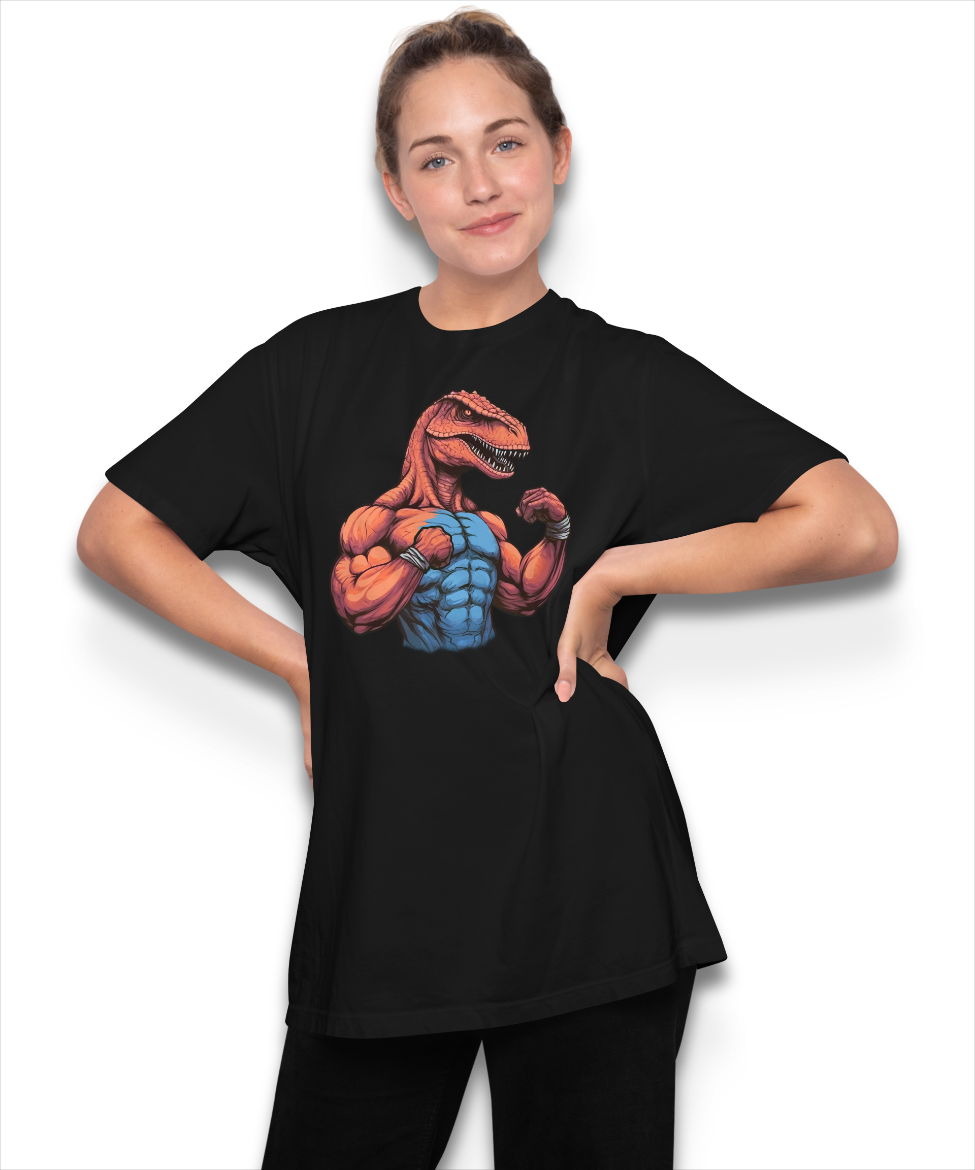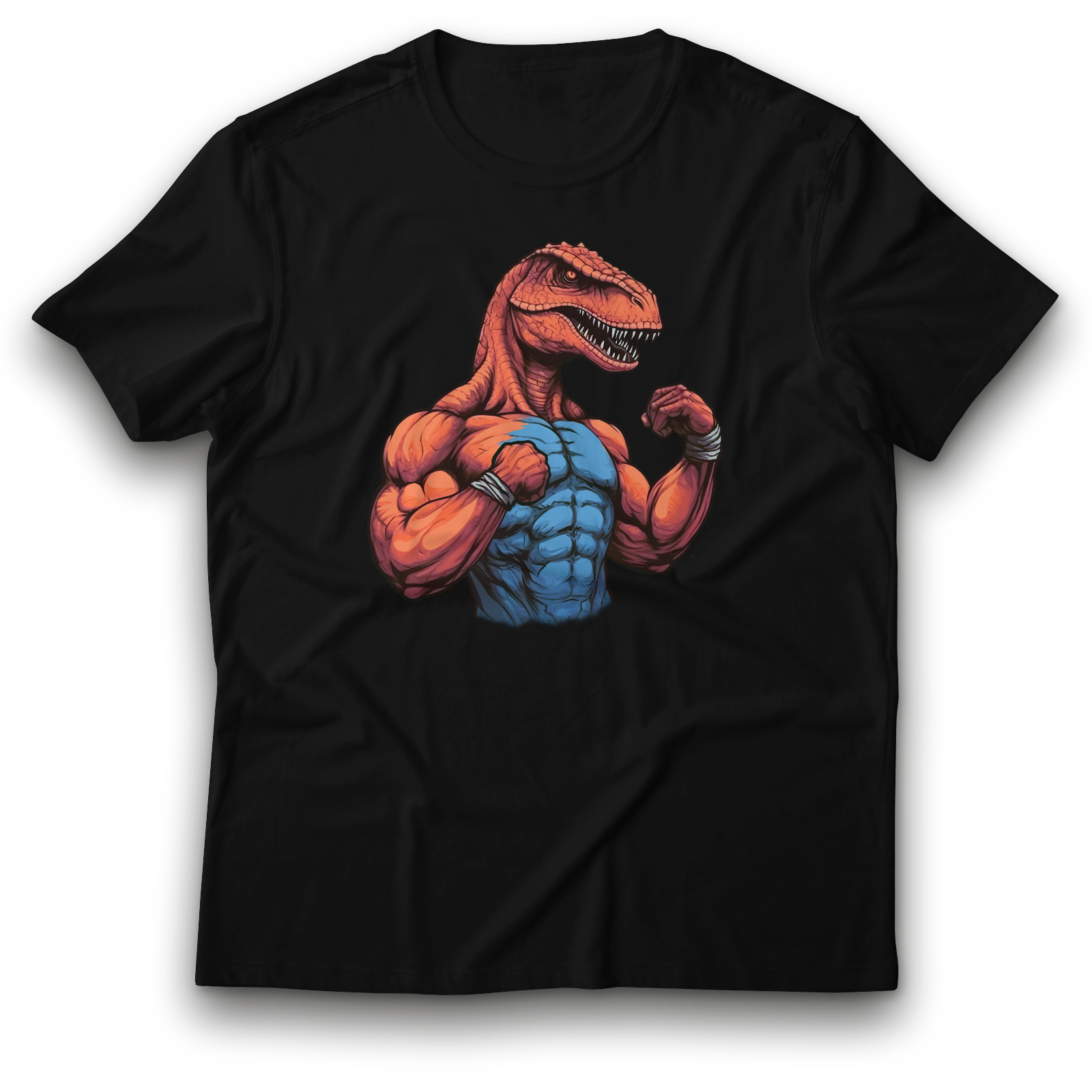 Muskulöses Velociraptor Dinosaurier Sport Kampfsport Fitness Fitnesstudio Muskel T-Shirt 122 - 3XL Baumwolle