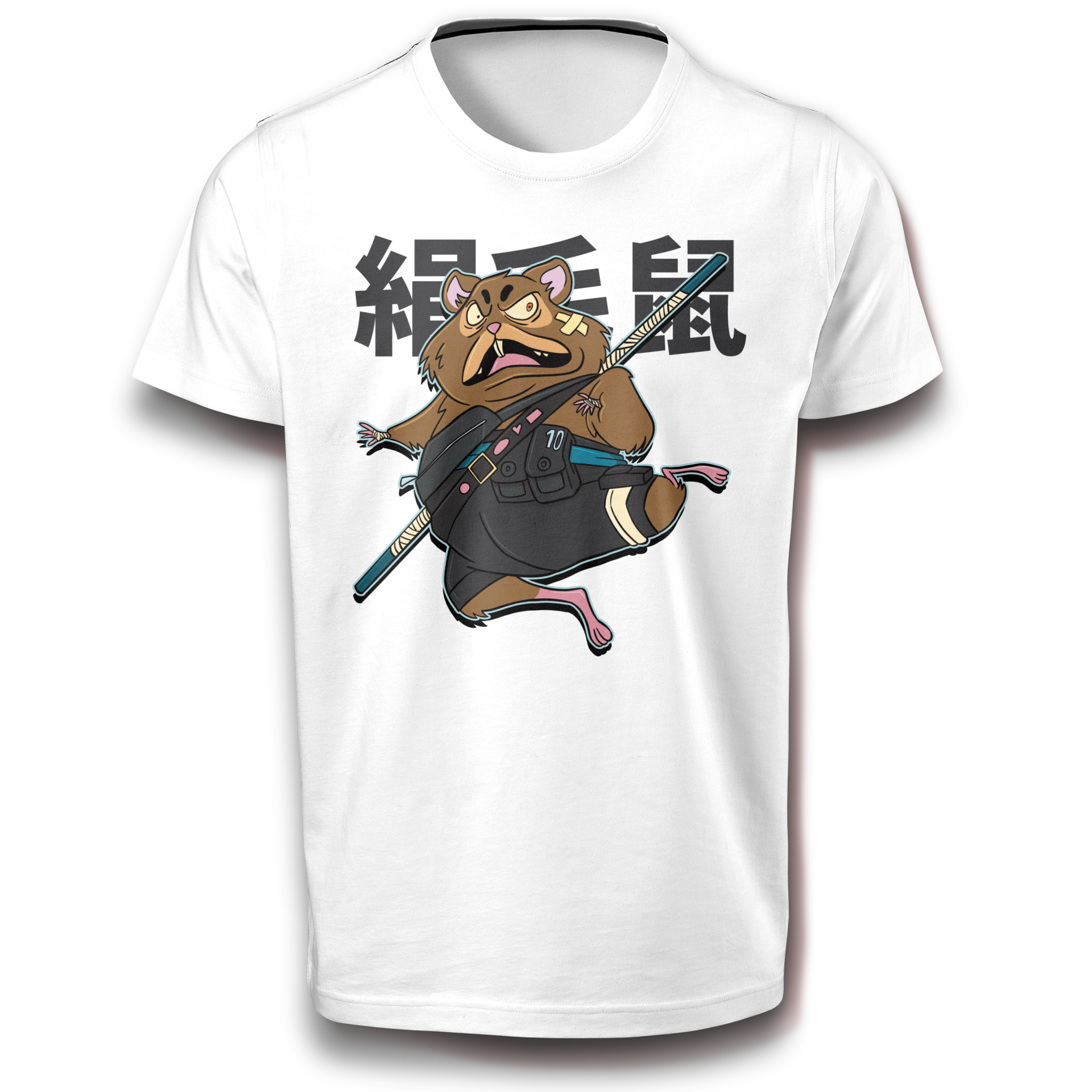 Samurai Hamster Krieger Kämpfer Lustig Fun T-Shirt weiß 122 - 3XL Baumwolle Schwert Japan Spaß Geschenkidee