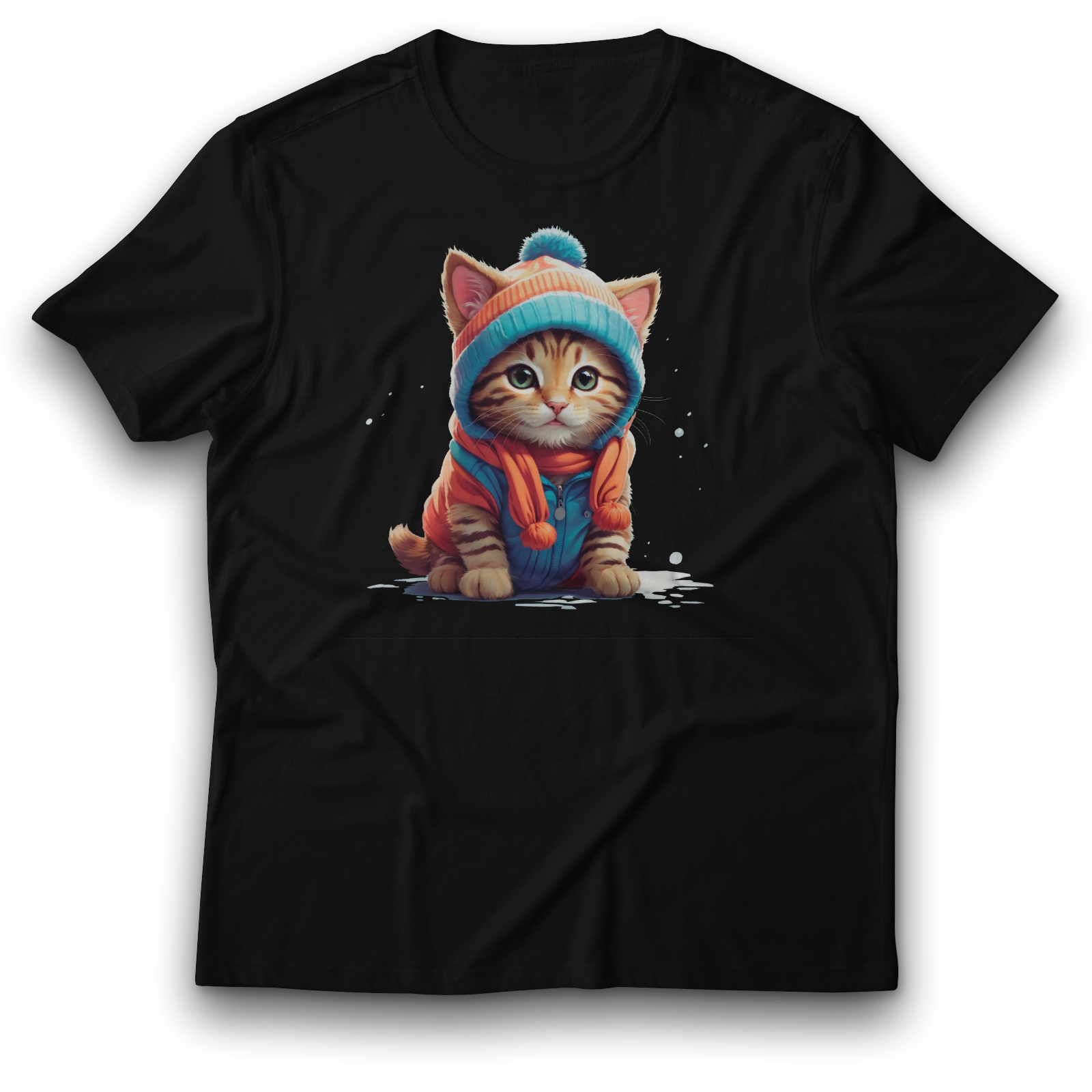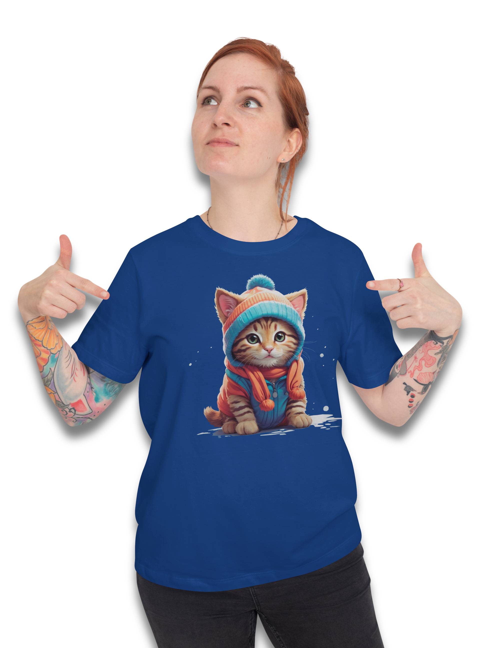 Katze Cat Tier Haustier Mietze Winter Mütze Kalt T-Shirt 122 - 3XL Baumwolle Hauskatze Kater Fun Süß