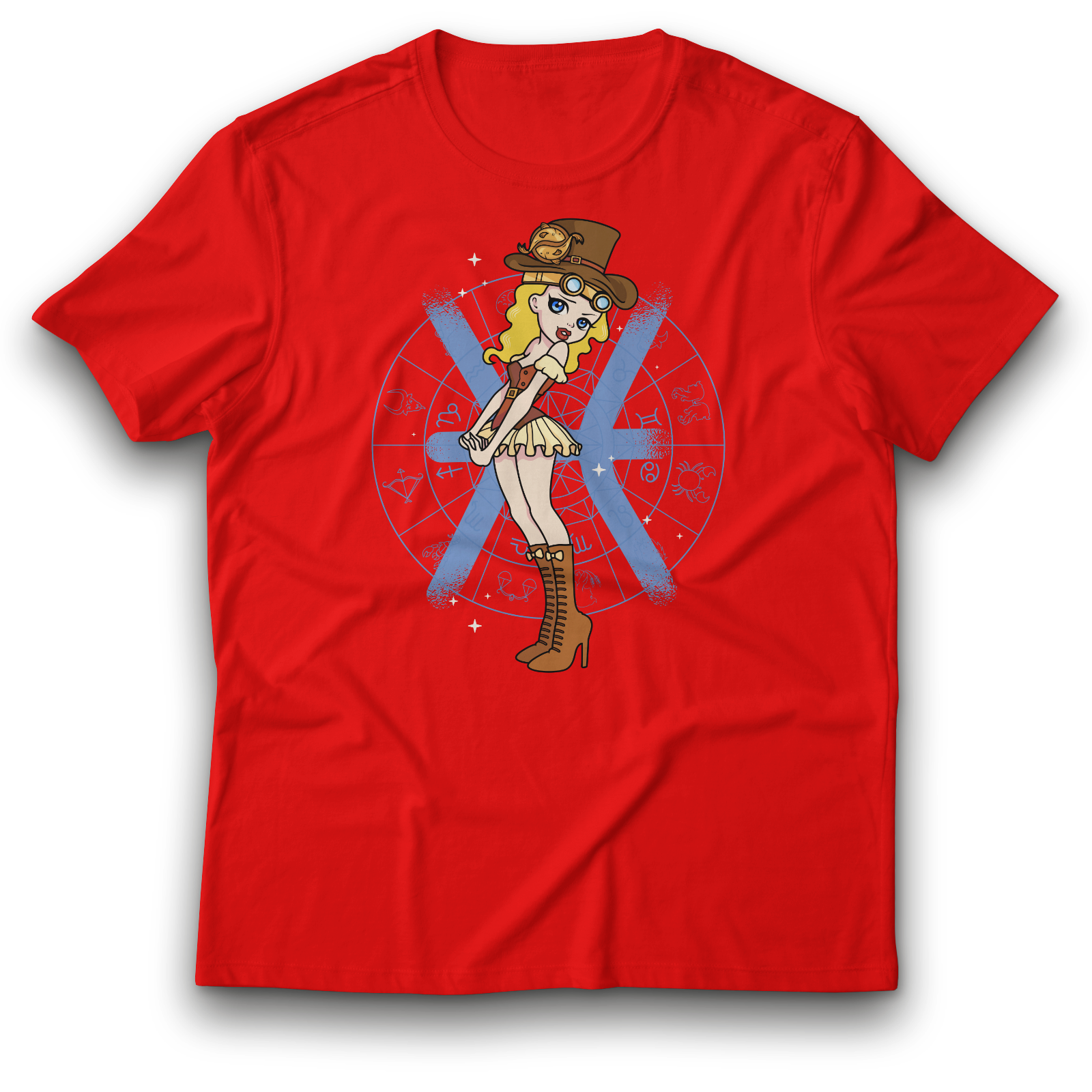 Steampunk Sternzeichen Tierkreiszeichen Fische Mädchen Anime Astrologi T-Shirt 122 - 3XL Baumwolle Spaß Lustig Dampf Subkultur steam Viktorianisch Fun