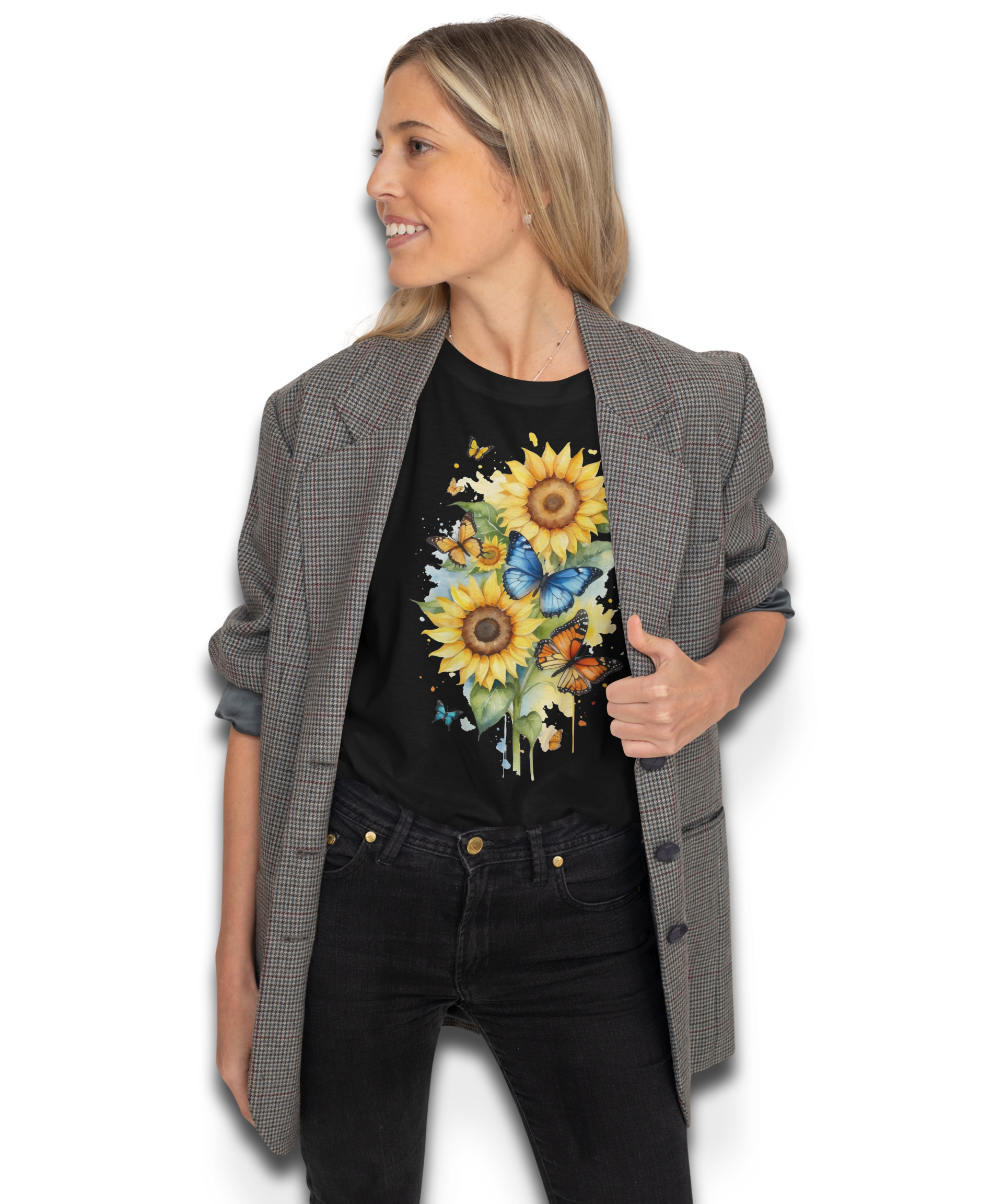 Sonnenblume mit Schmetterling Schmetterlinge Natur Blumen Bunt Fun T-Shirt 122 - 3XL Baumwolle
