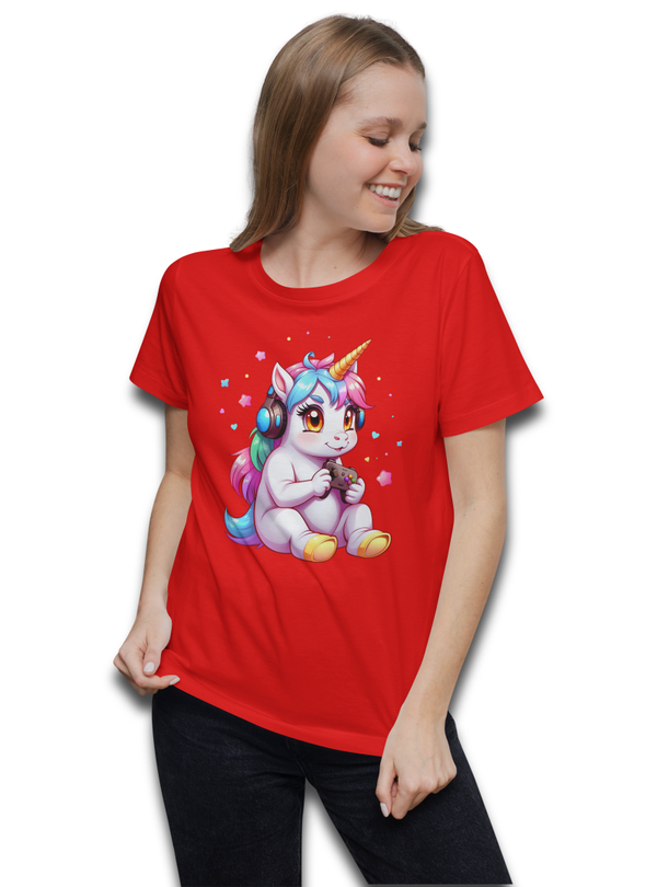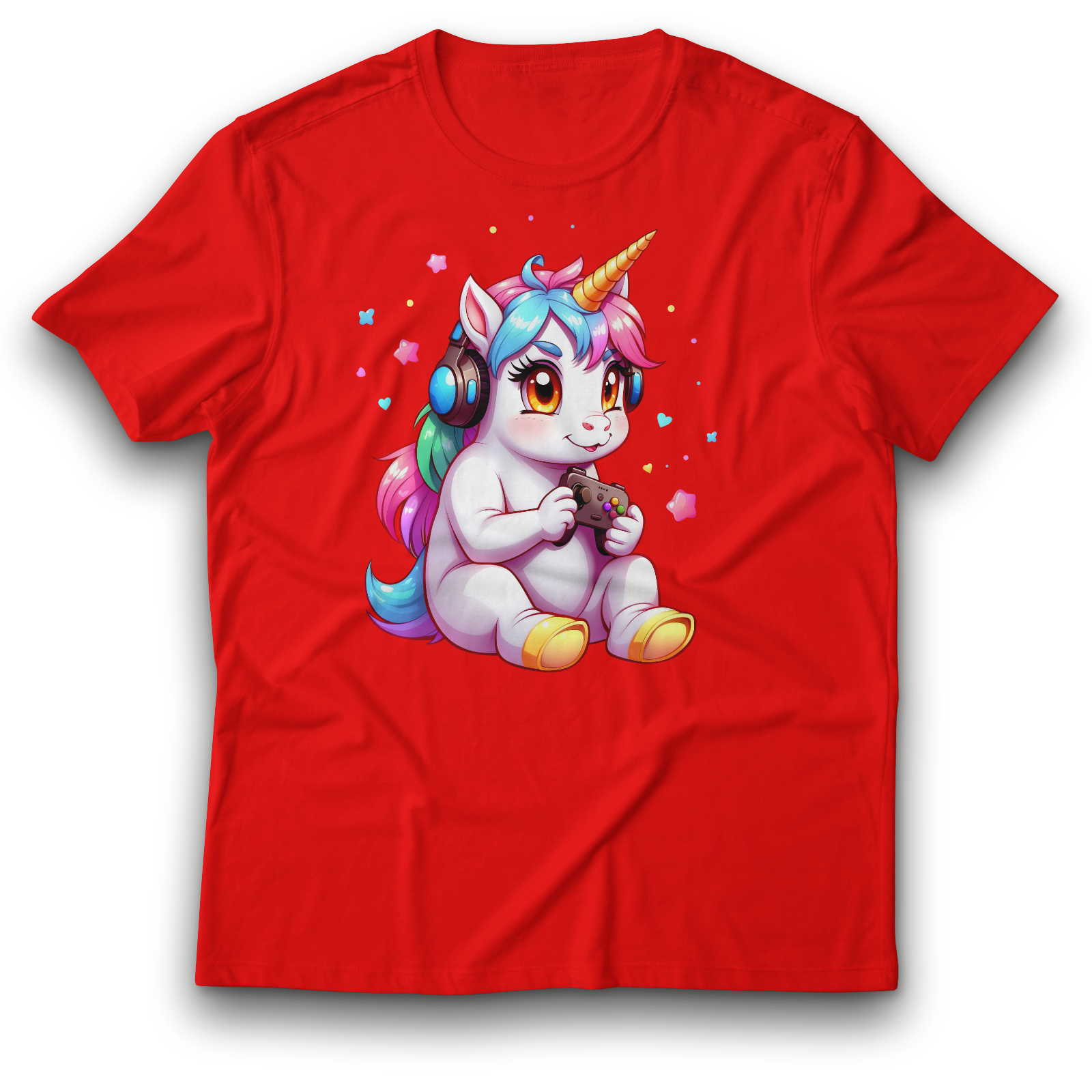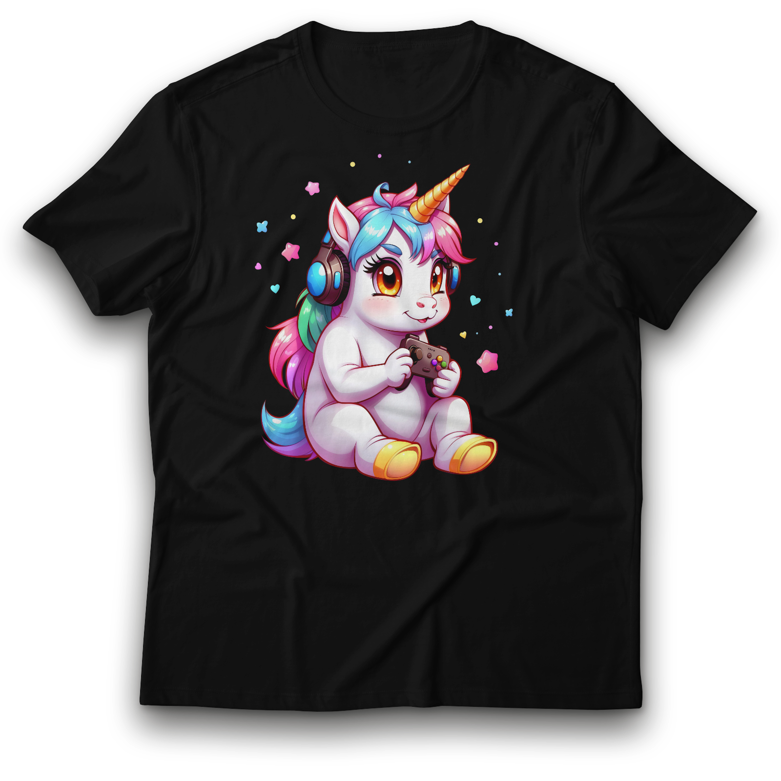 Gamer Einhorn Zocker Outfit Party Süß Fabelwesen Fun Konsole Controller T-Shirt 122 - 3XL Baumwolle