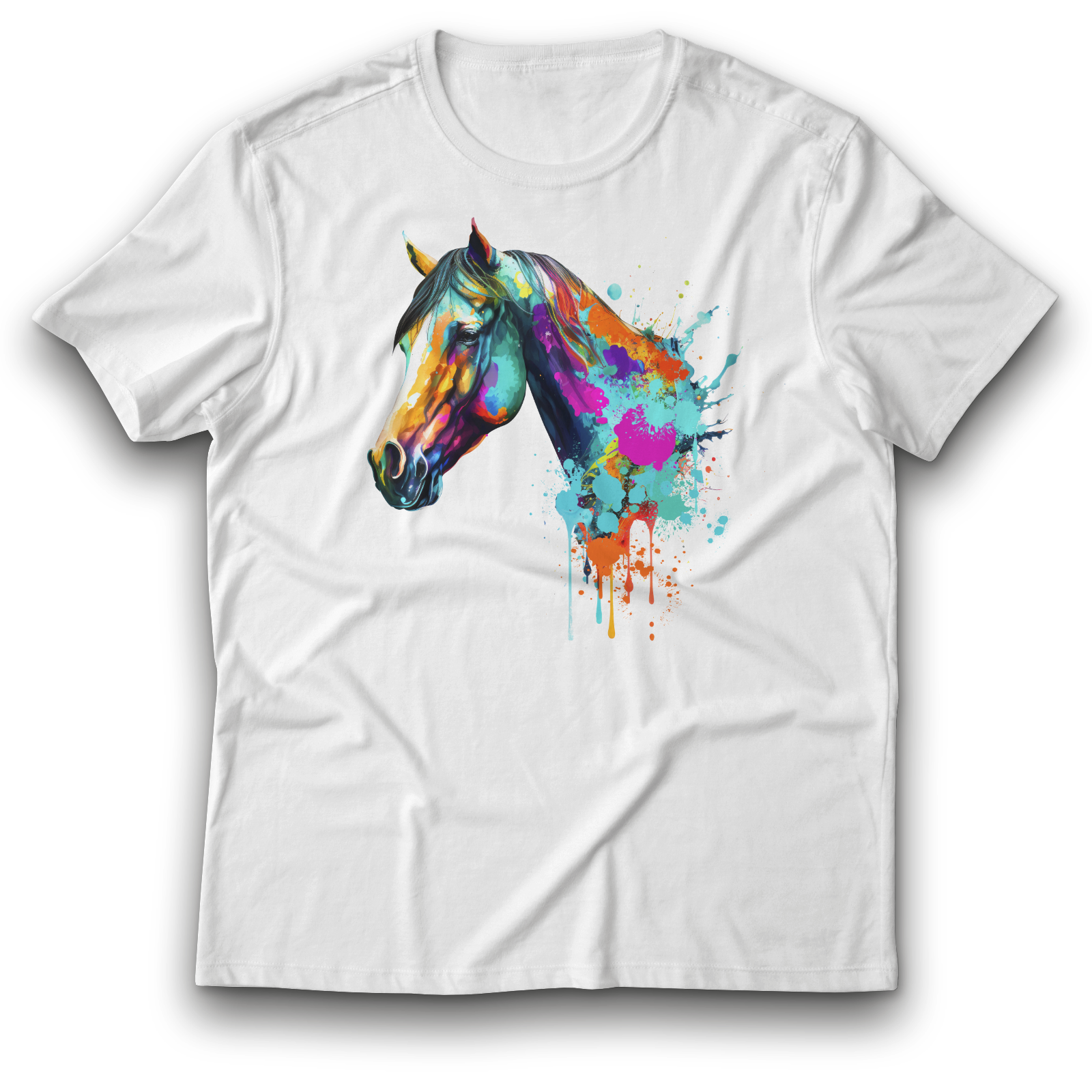 Aquarell Buntes Pferdekopf Design Fun T-Shirt weiß 122 - 3XL Baumwolle Normalgröße Pferd Tier Farbe Spaß Lustig