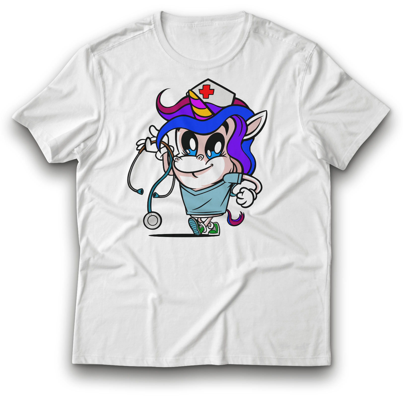 Krankenschwester Dame Einhorn Arzt Medizin Fabelwesen Fun Humor T-Shirt weiß 122 - 3XL Baumwolle Party Spaß Lustig
