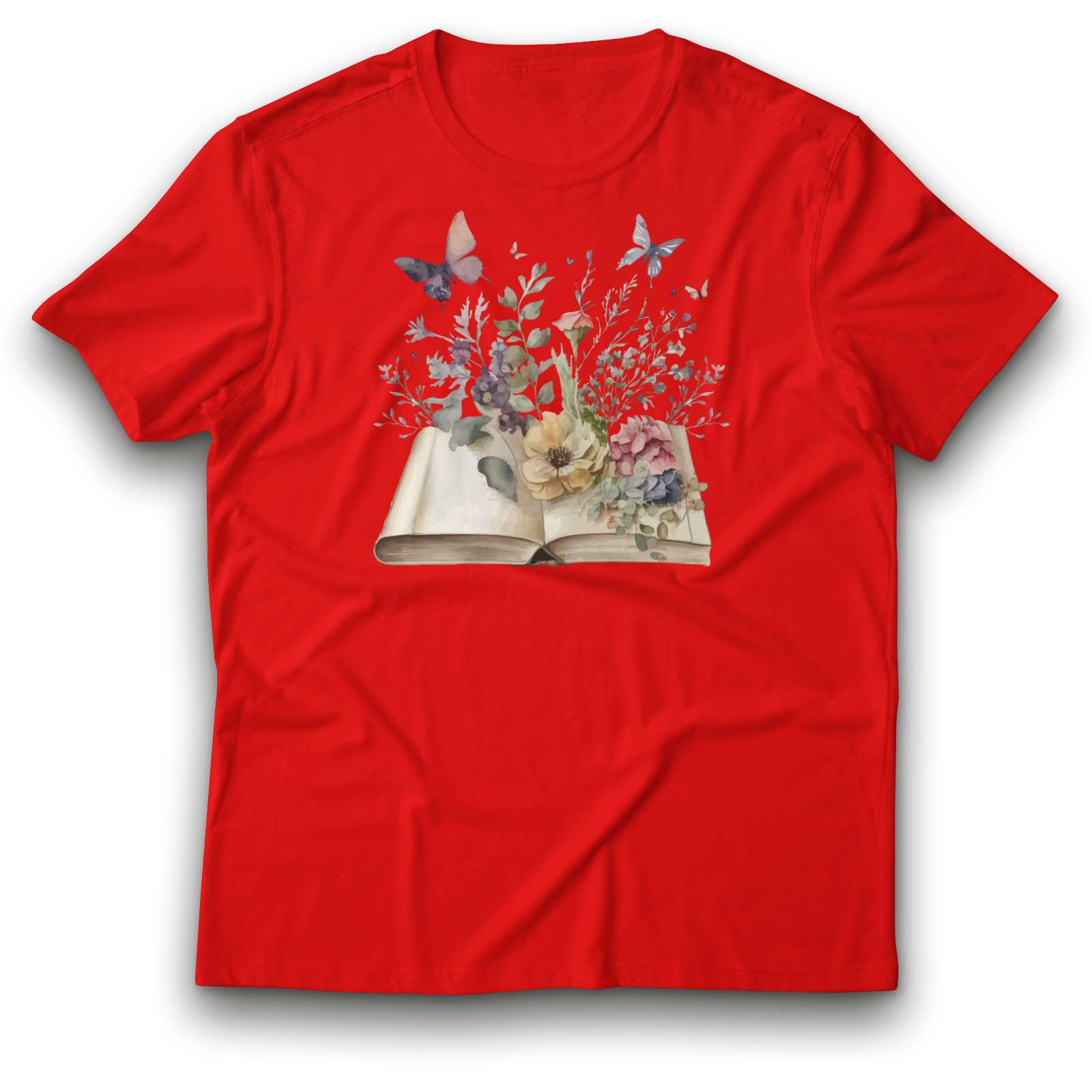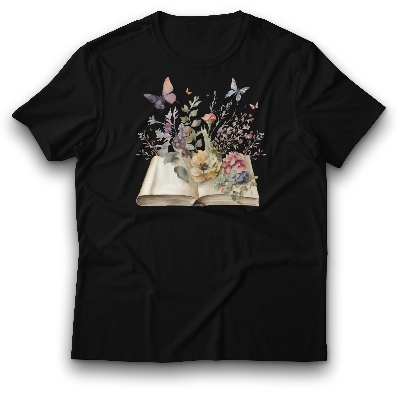 Offenes Buch mit Blumen Magie Magisch Schmetterling Schmetterlinge Insekten Blume Natur T-Shirt 122 - 3XL Baumwolle