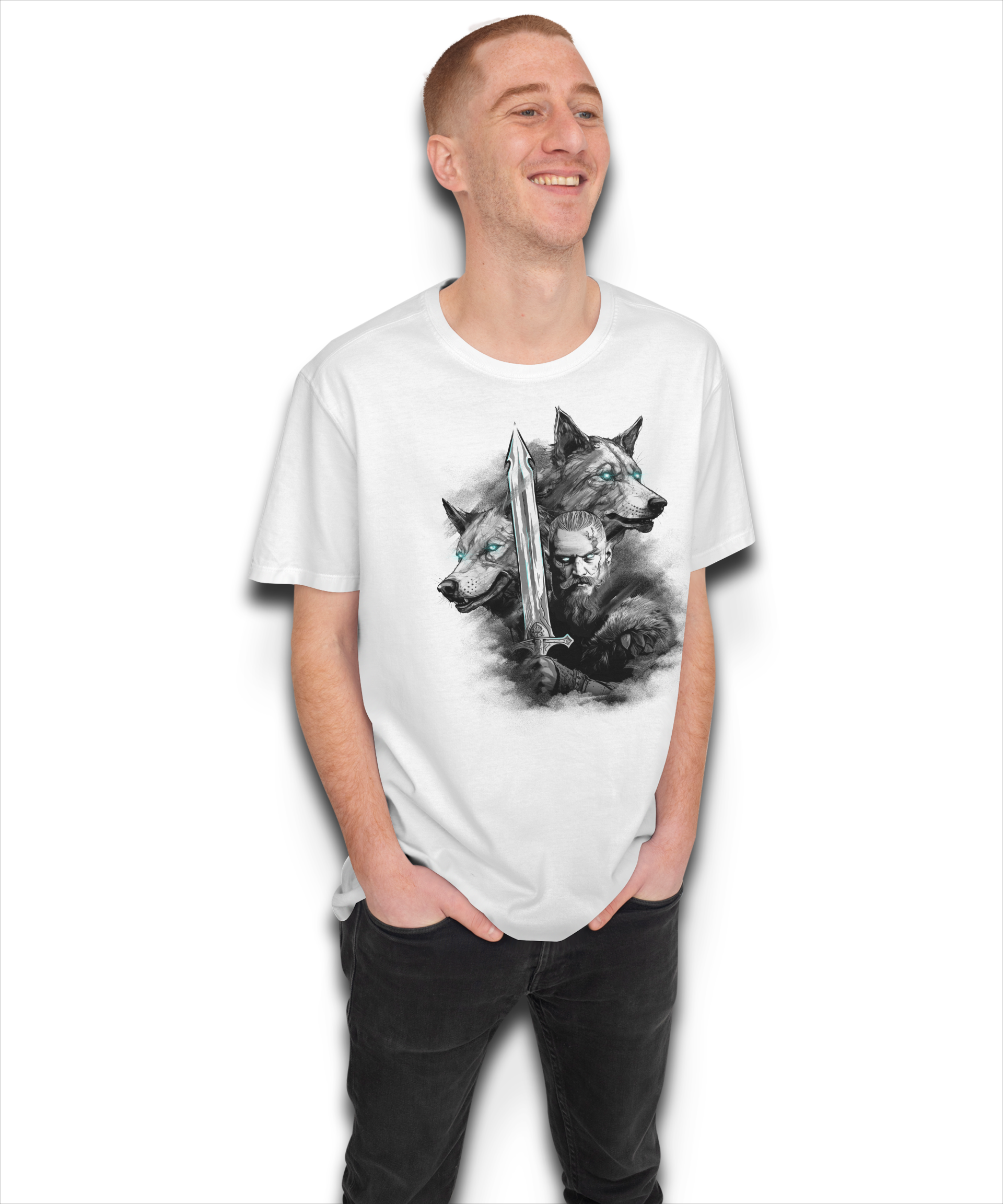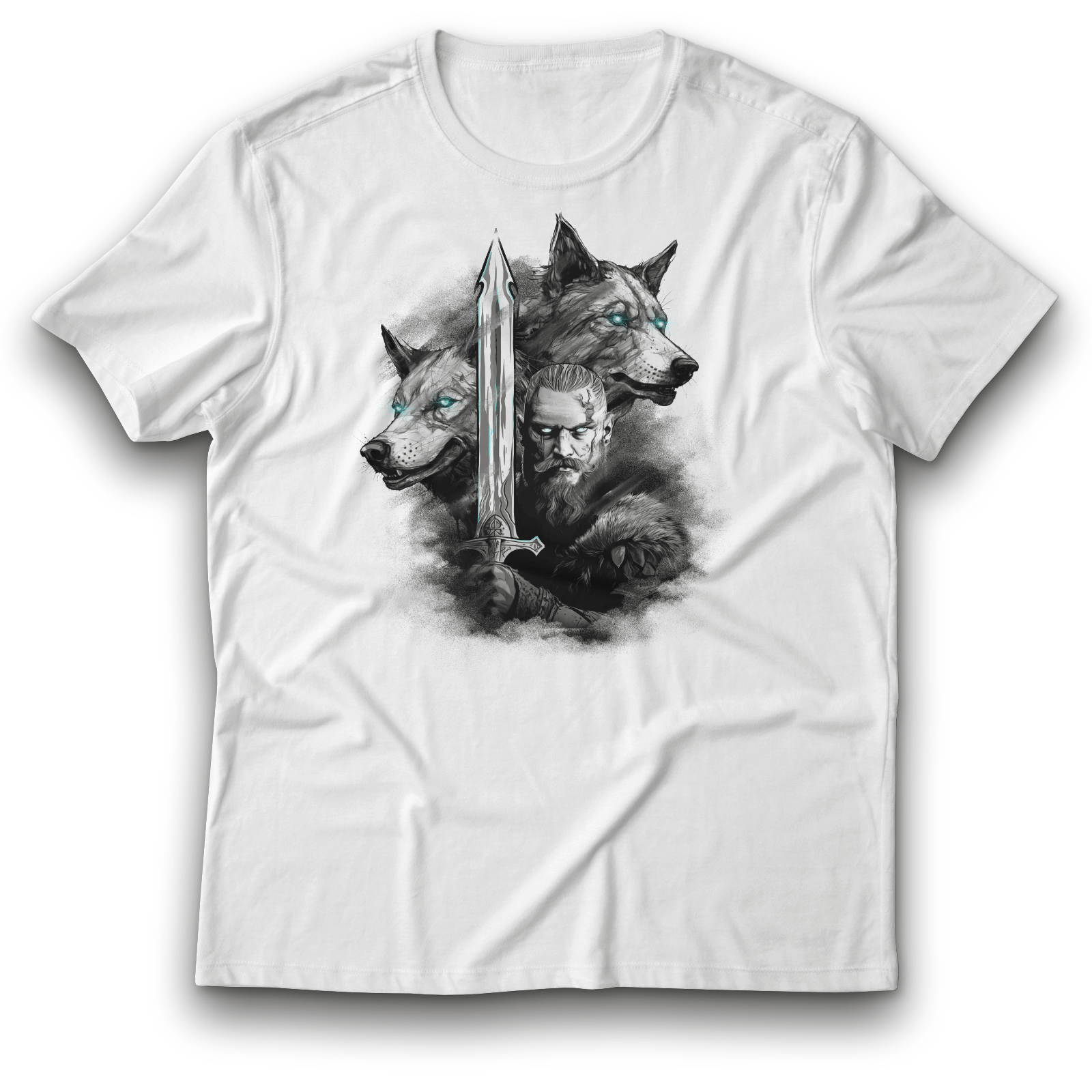 Wikinger & Wölfe Wolf Wikinger Kämpfer Odin Valhalla Keltisch Nordisch Mythologie T-Shirt weiß 122 - 3XL Baumwolle Ragnar Raubtier