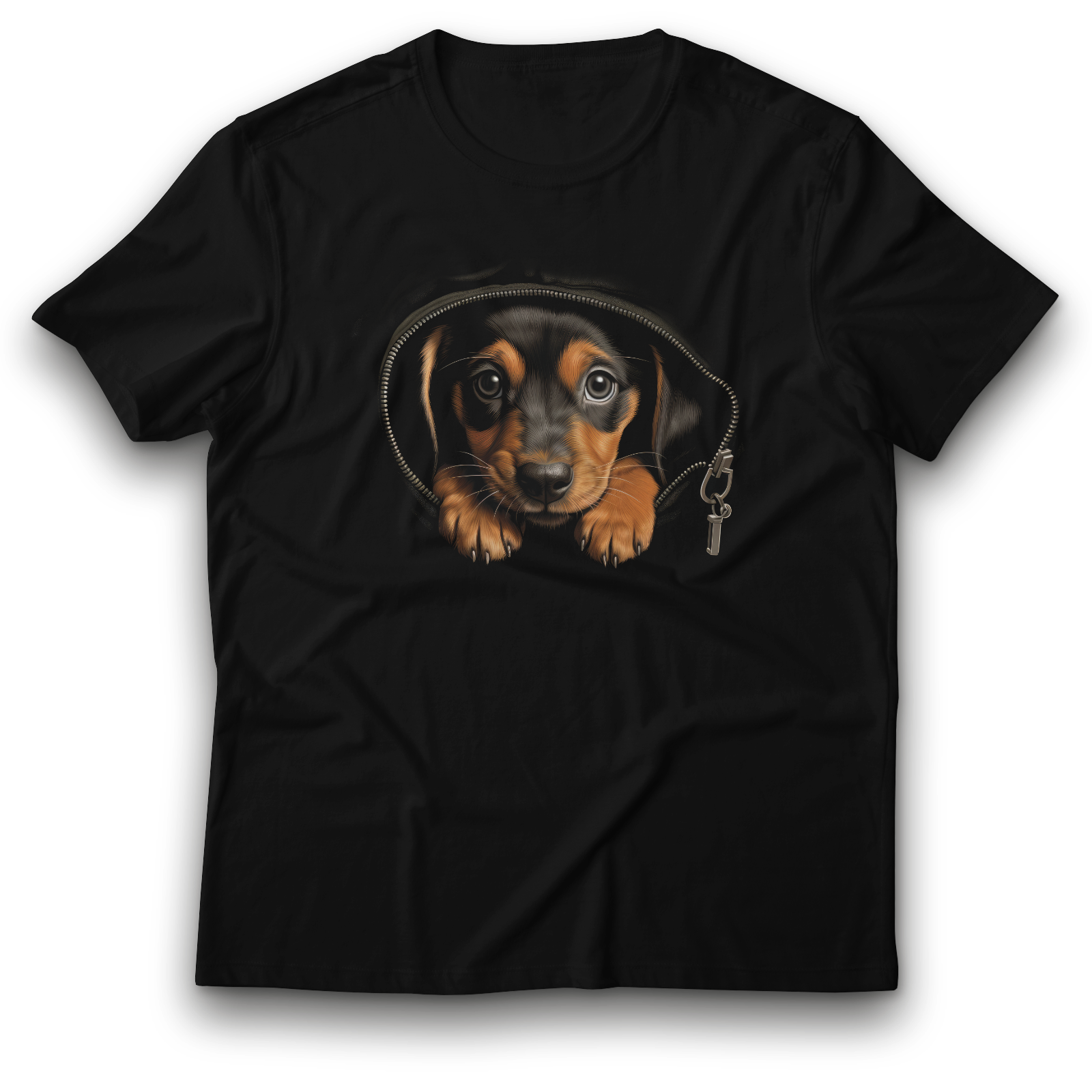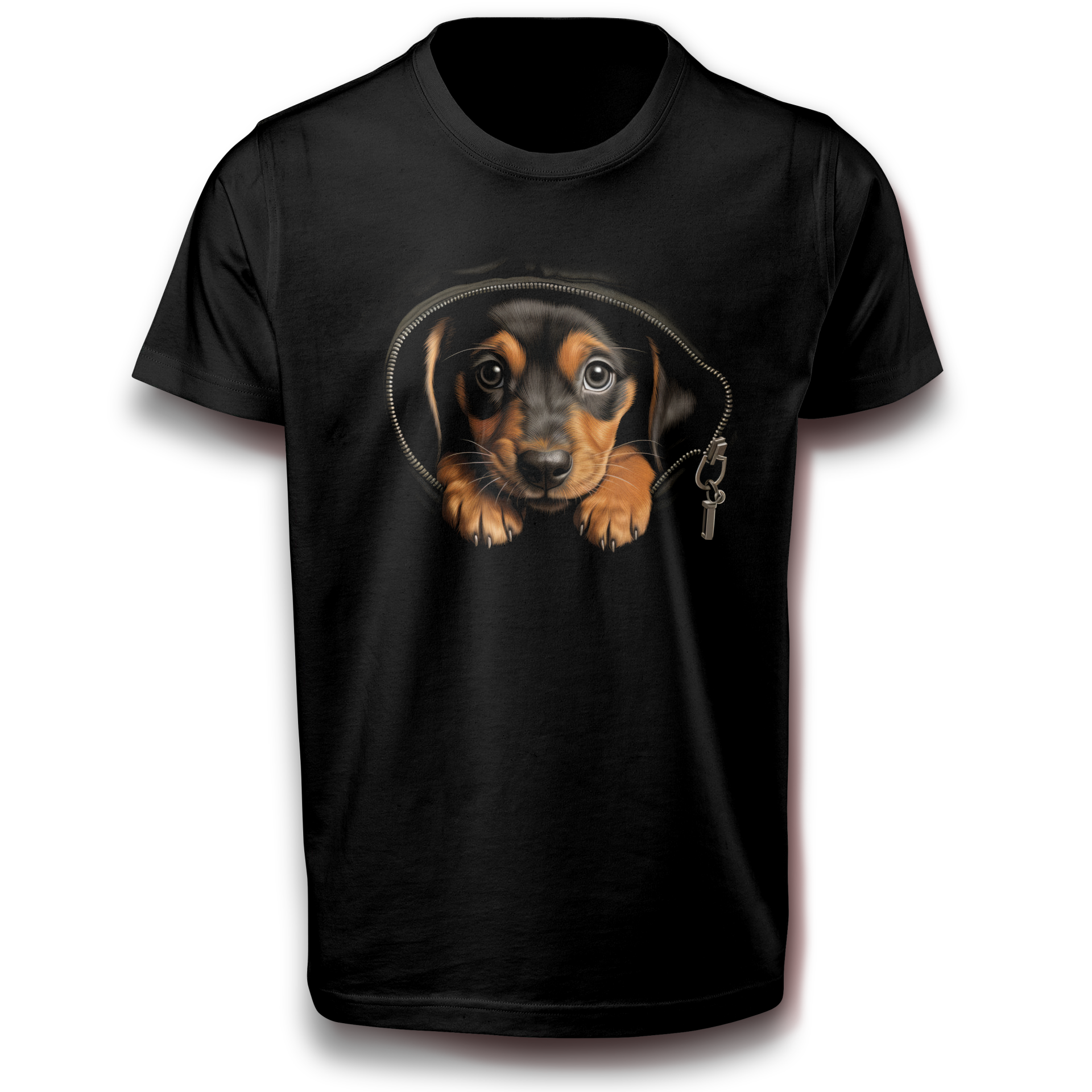 Hündchen in der Tasche Hund Hunderasse Haustier T-Shirt schwarz 110 - 3XL Baumwolle Süß Treu