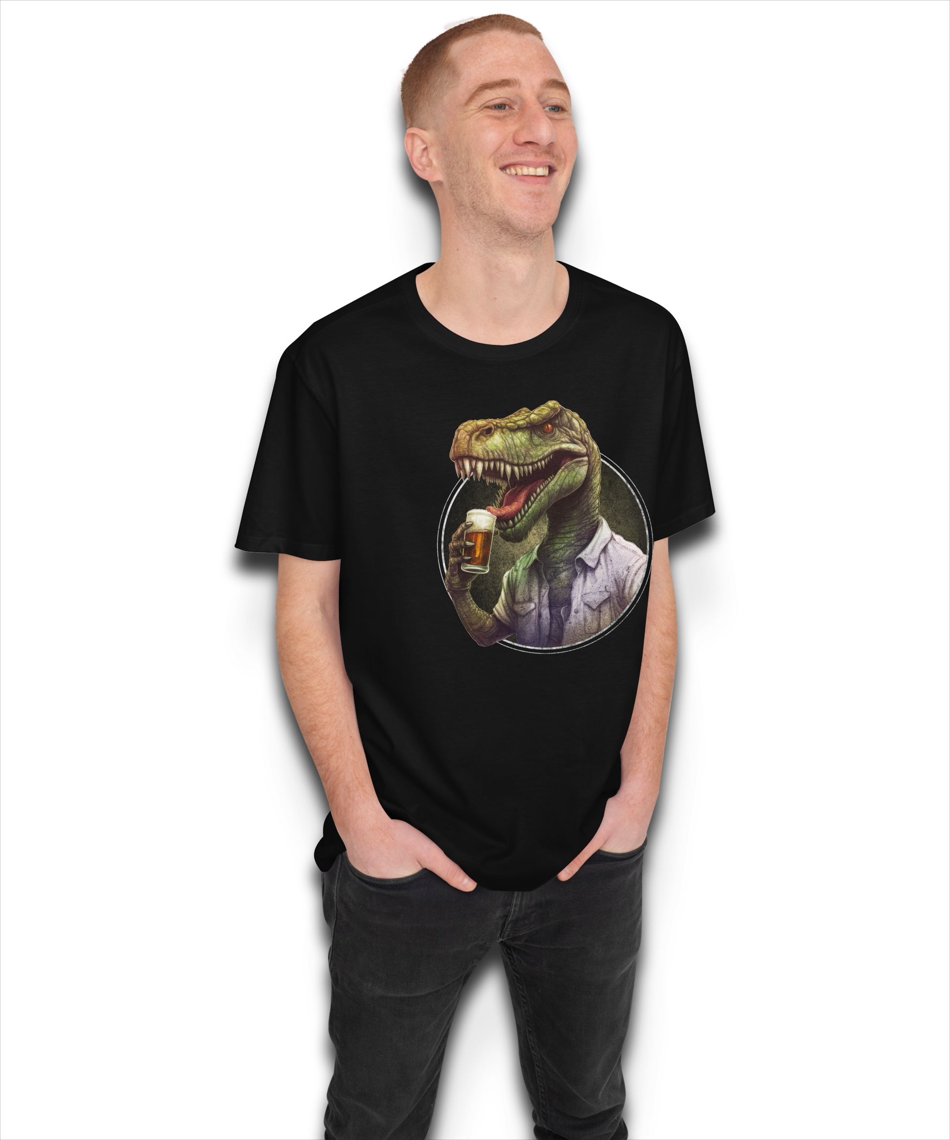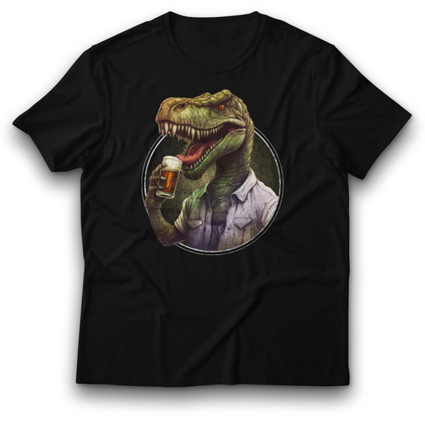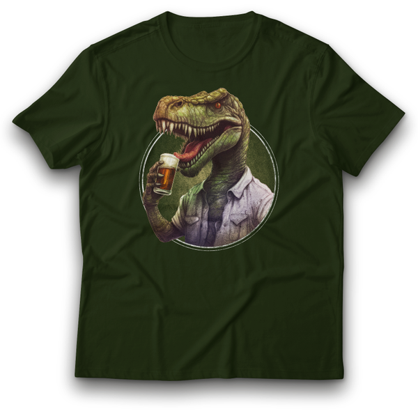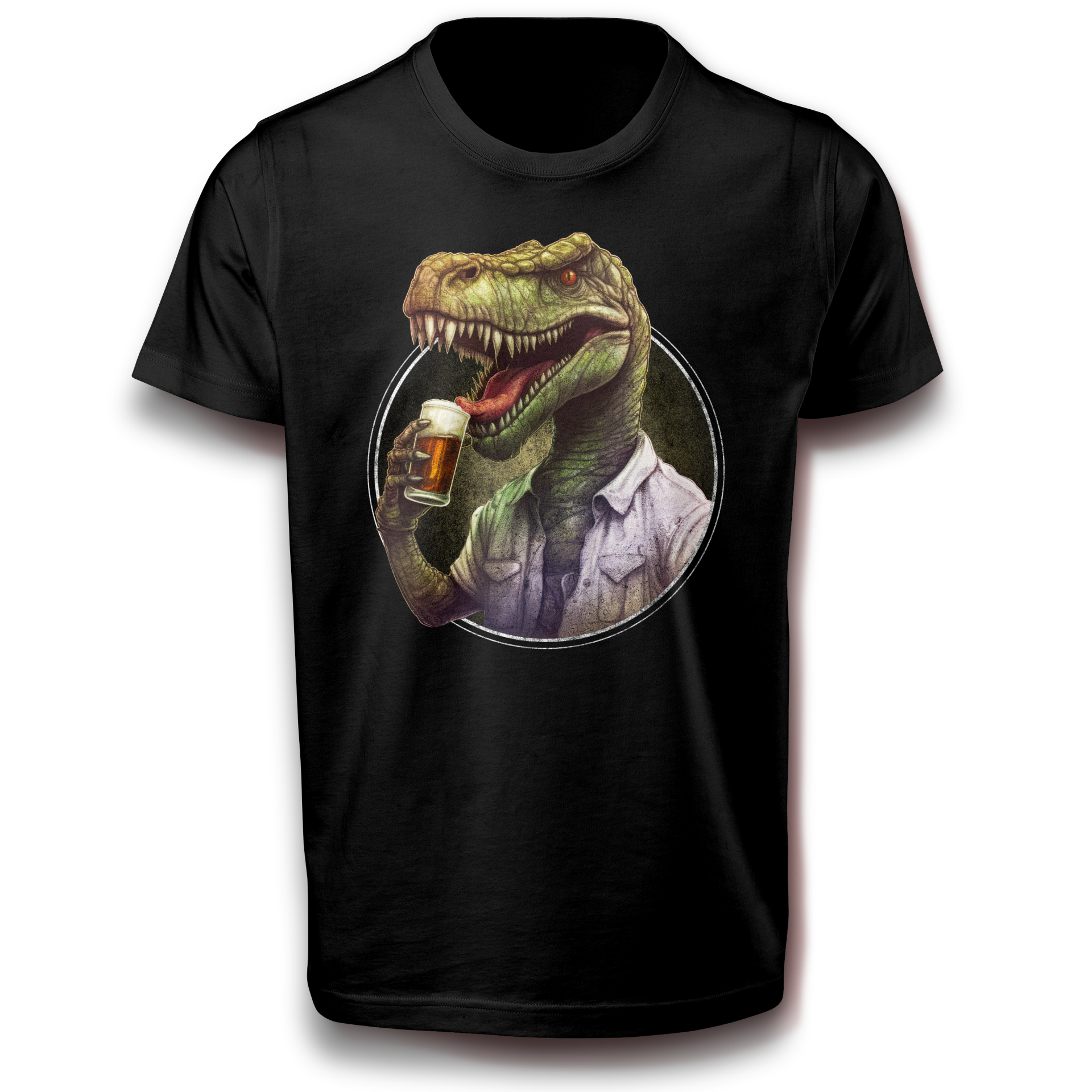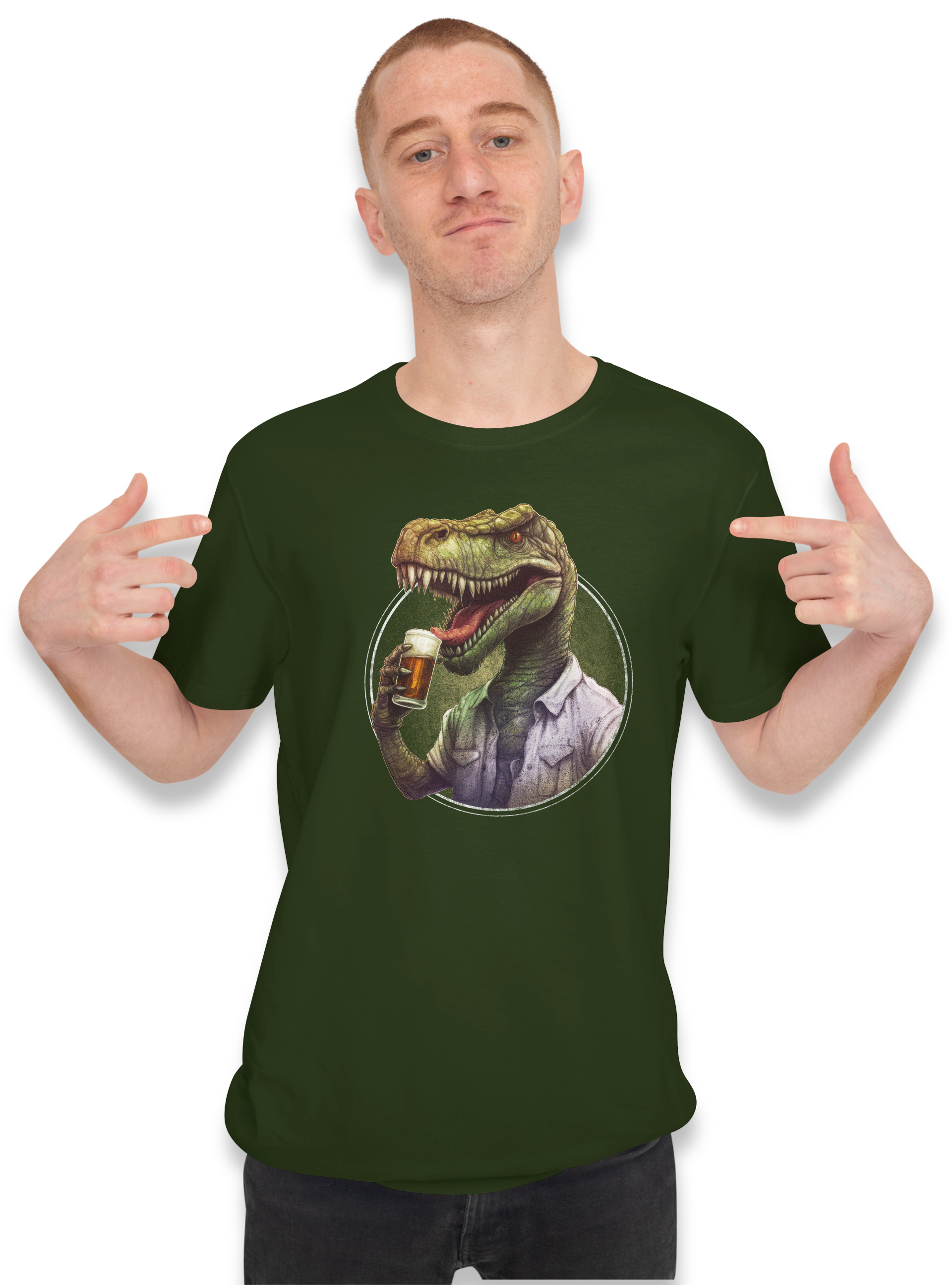 Urzeit Dino T-Rex mit Bier Carnotaurus Dinosaurier Tier Reptilien Fleischfresser Fun T-Shirt 122 - 3XL Baumwolle