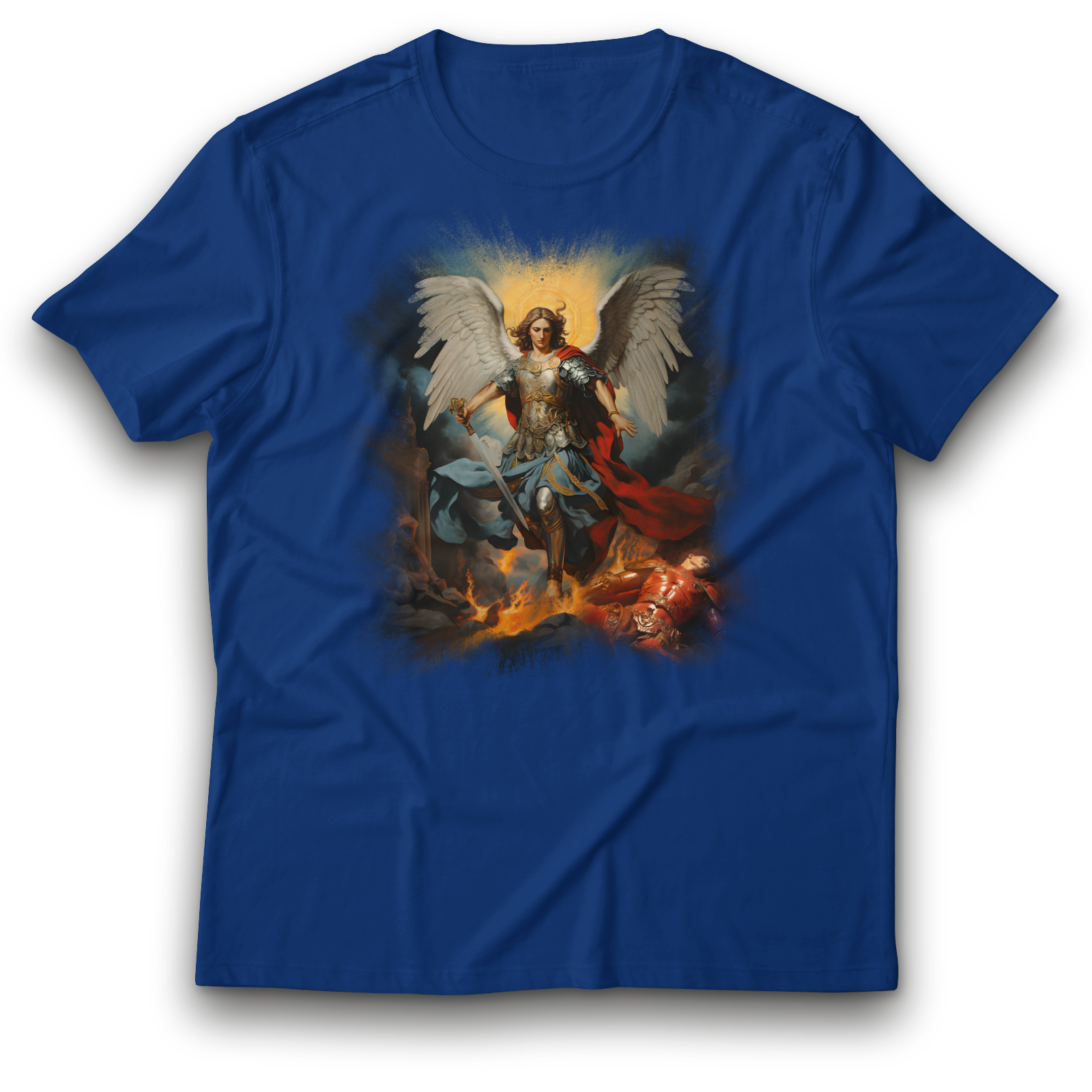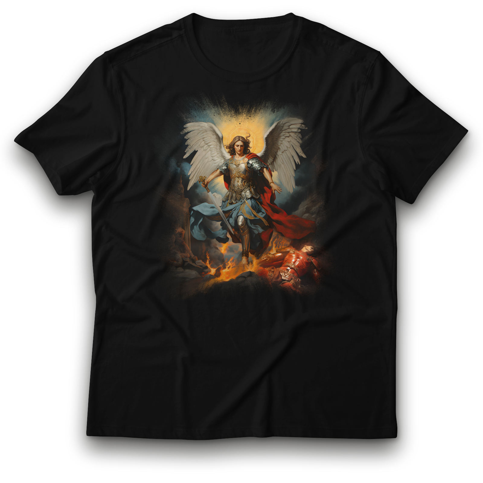 Erzengel mit Engel Flügel Mystisches Kampf Religion Krieger Kämpfer mit Schwert im Flammen T-Shirt 122 - 3XL Baumwolle