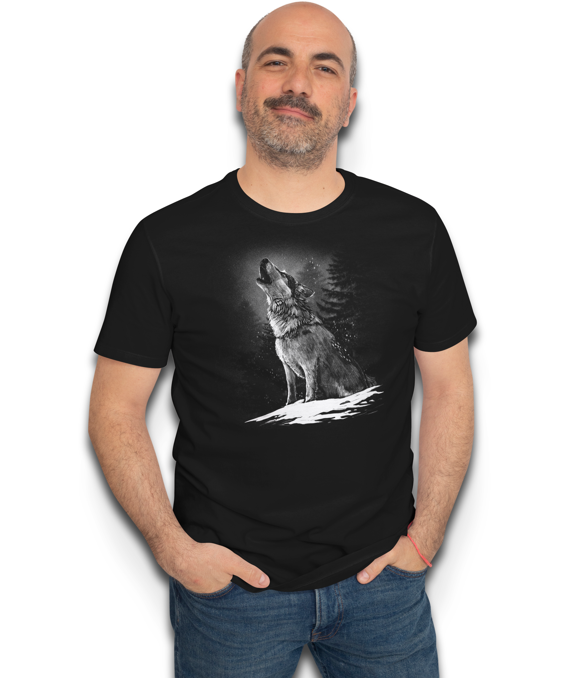 Wolf realistisches heulendes Tier Raubtier Wolfstier T-Shirt 122 - 3XL Baumwolle Wald heult
