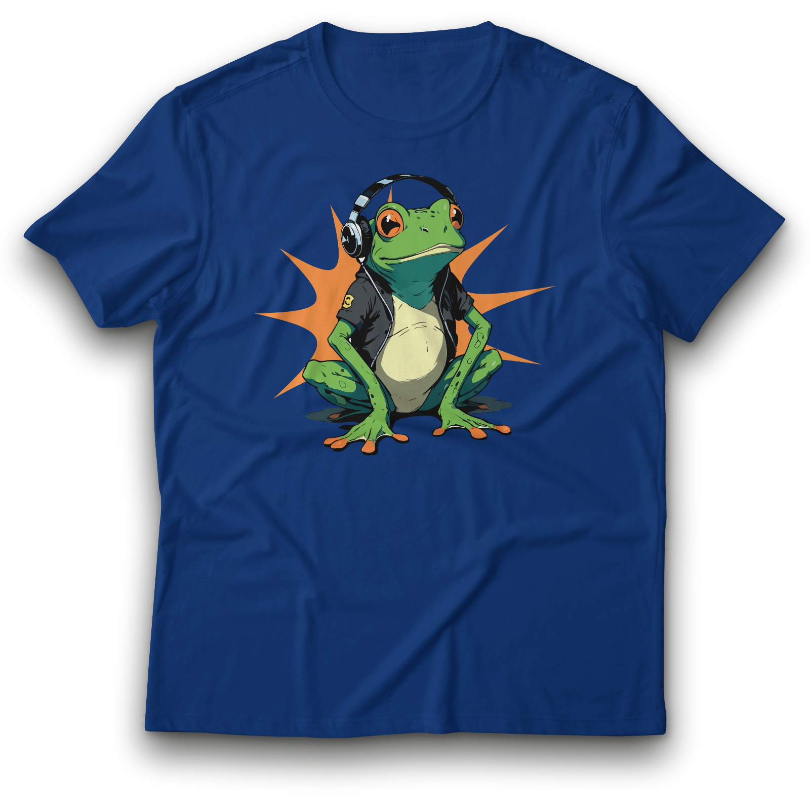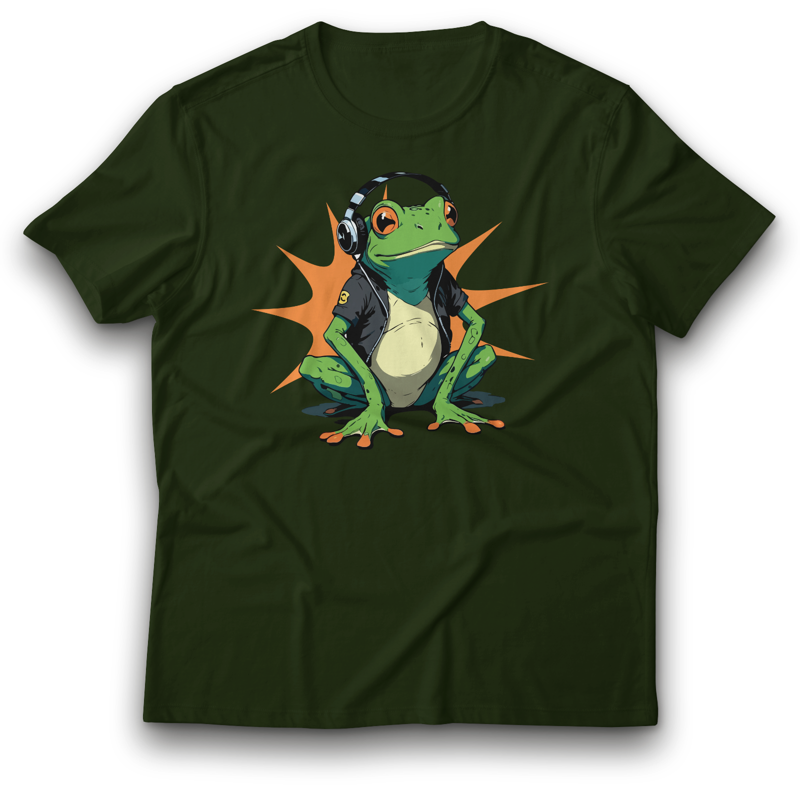 Grüner Frosch Dj Kröte mit Kopfhörer Funk Soul Bluetooth Musik Fun T-Shirt 122 - 3XL Baumwolle